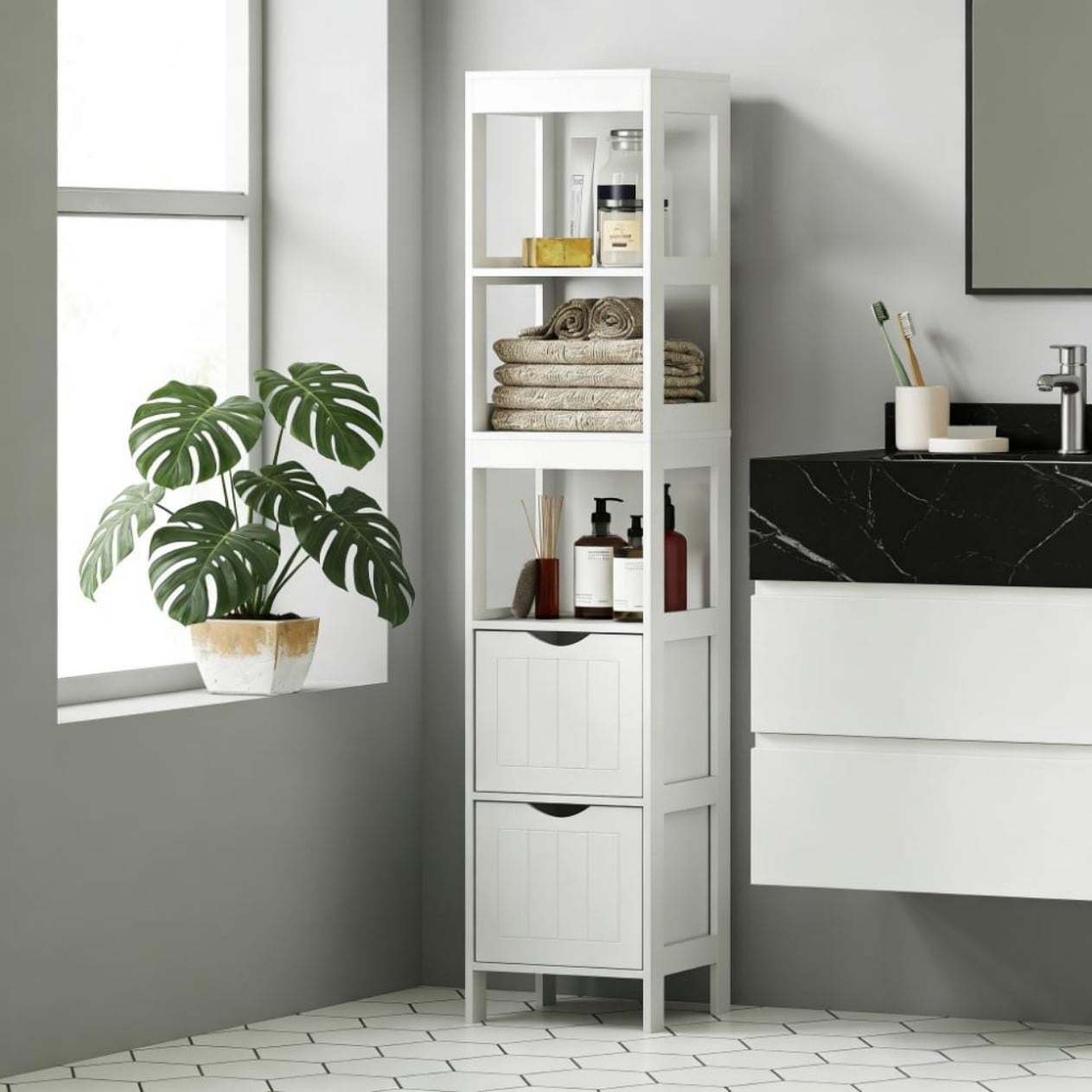 Open & Closed Bathroom Storage Cabinet Tall Display Cabinet w2 Drawer