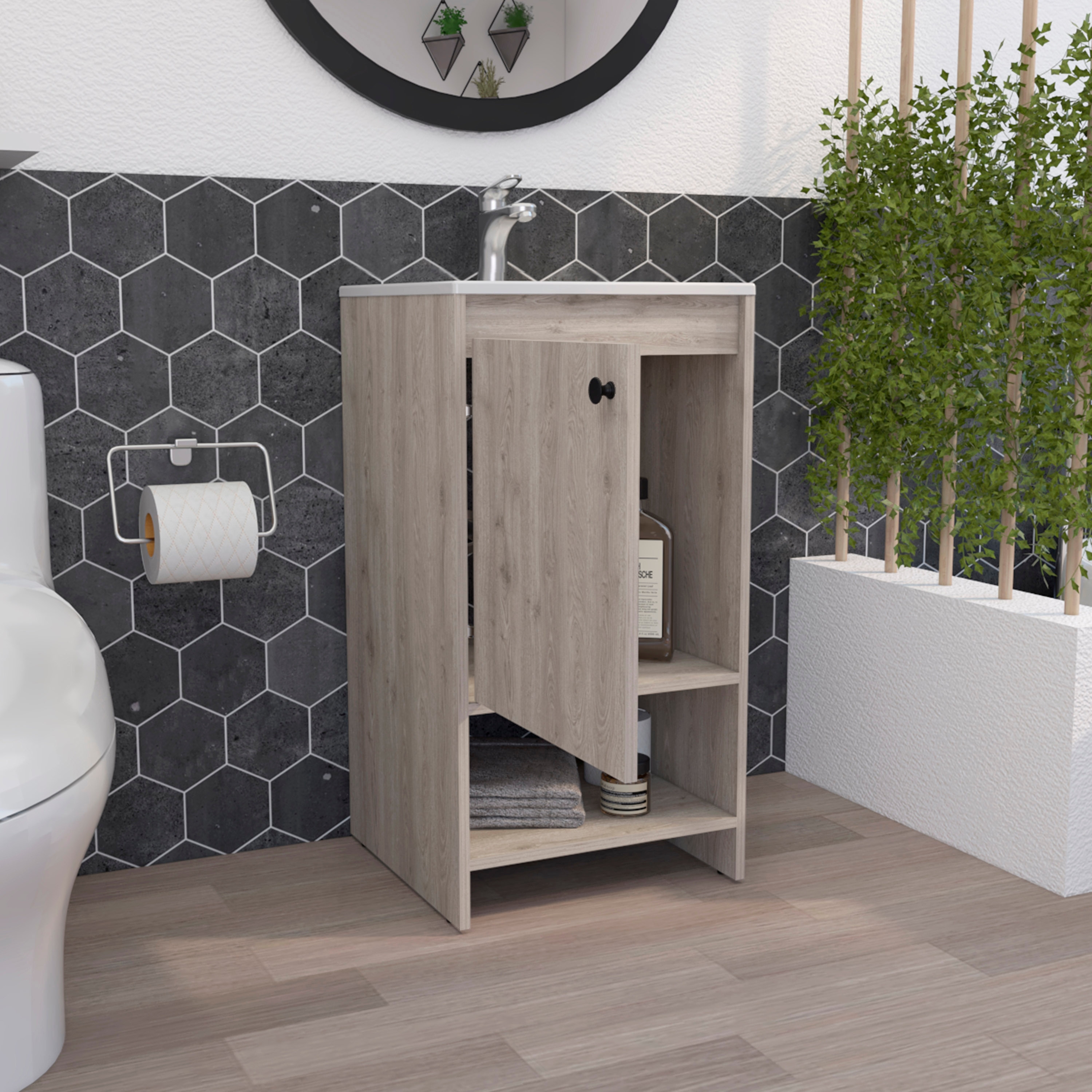 20" Bathroom Vanity with Sink, Bathroom Cabinet with Soft Closing Door, Storage Rack and Open Shelf, Grey