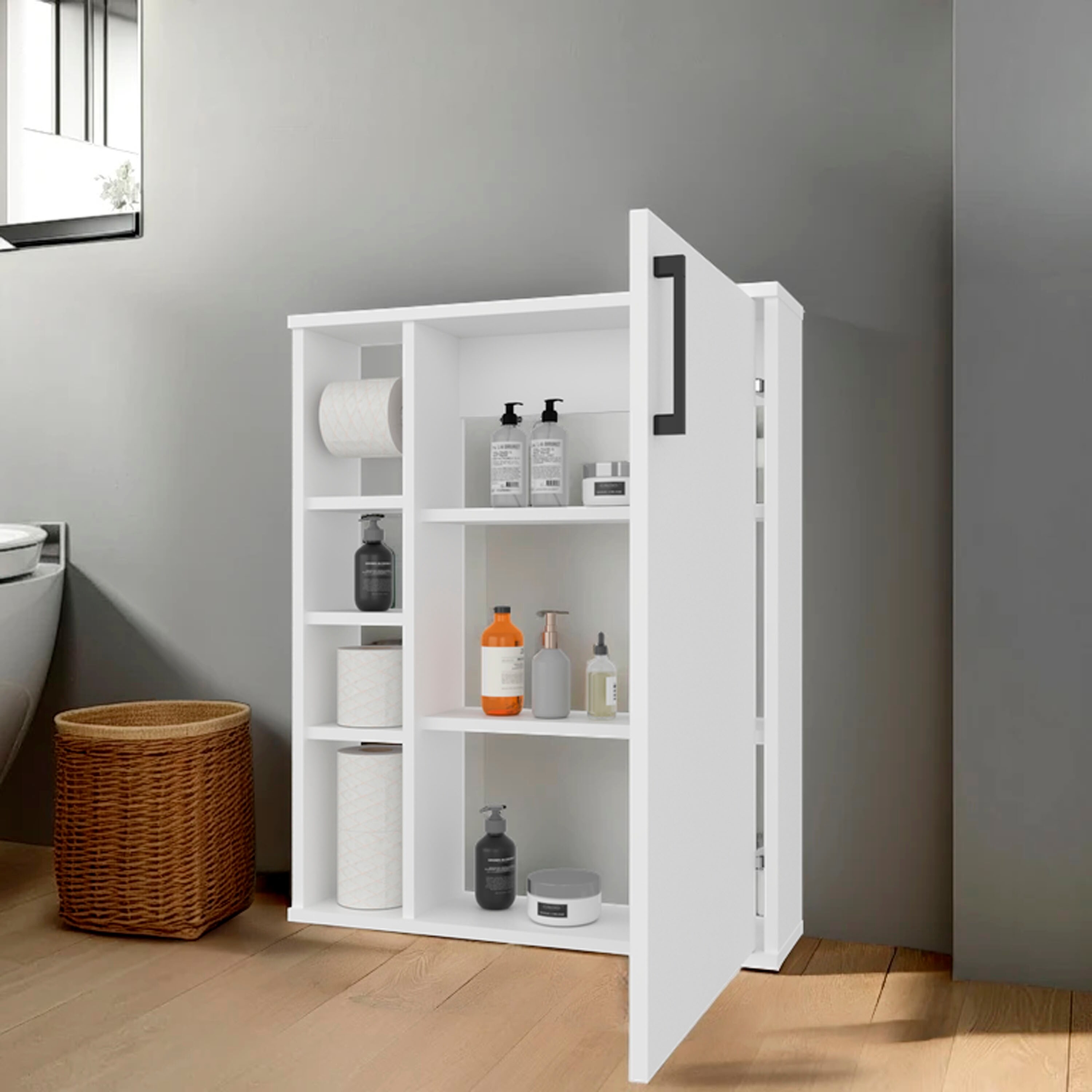 Bathroom Cabinet, 4 Open Shelves, 1 Door, White