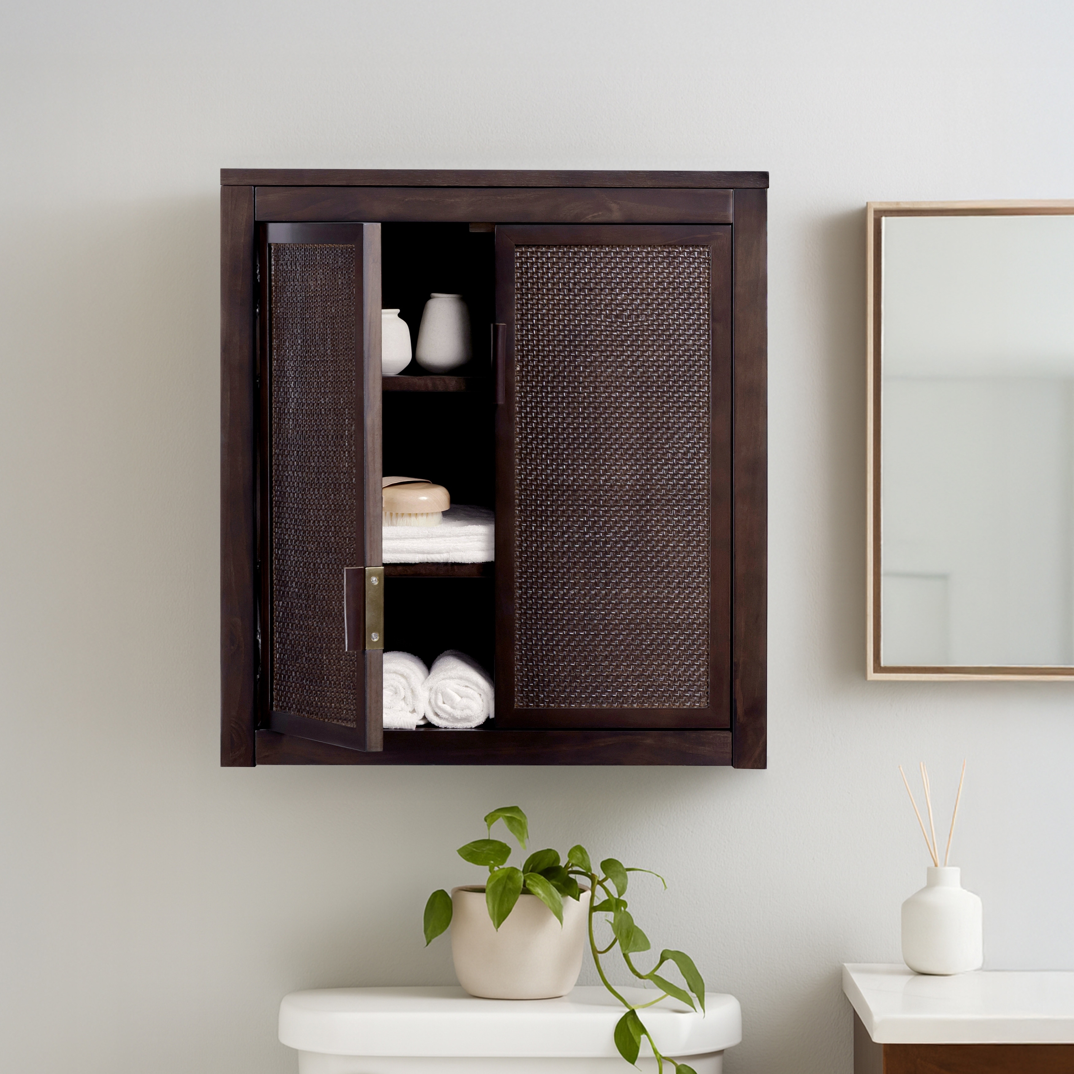 Teamson Home Hatteras 22 in. W 2-Door Wall Cabinet with Rattan Inlay Doors, Bathroom Wall Storage, Small Bathroom Organizer