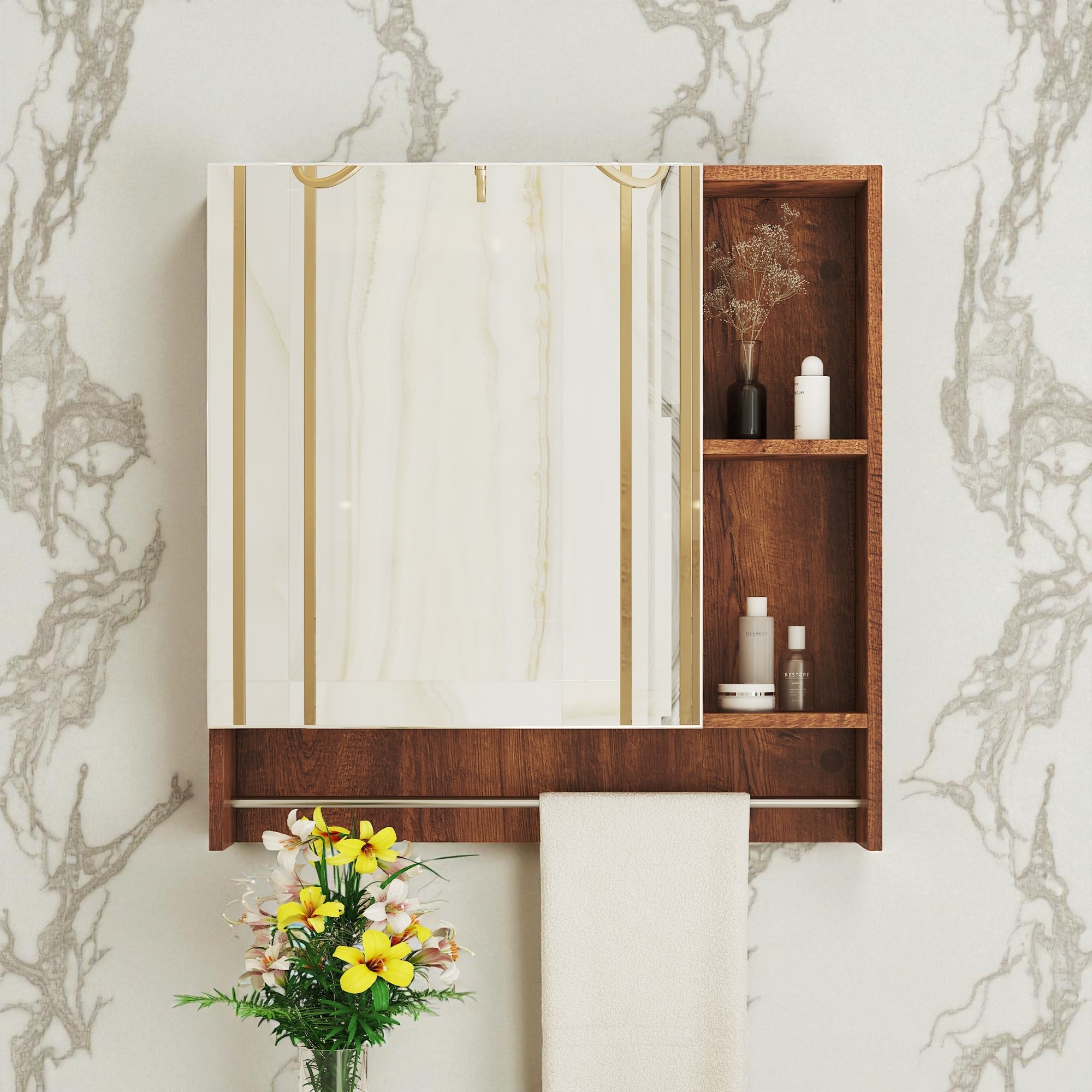 Wall-Mounted Bathroom Mirror Cabinet with Shelves, Towel Rack, and Storage Compartments,Over the Toilet Medicine Cabinet