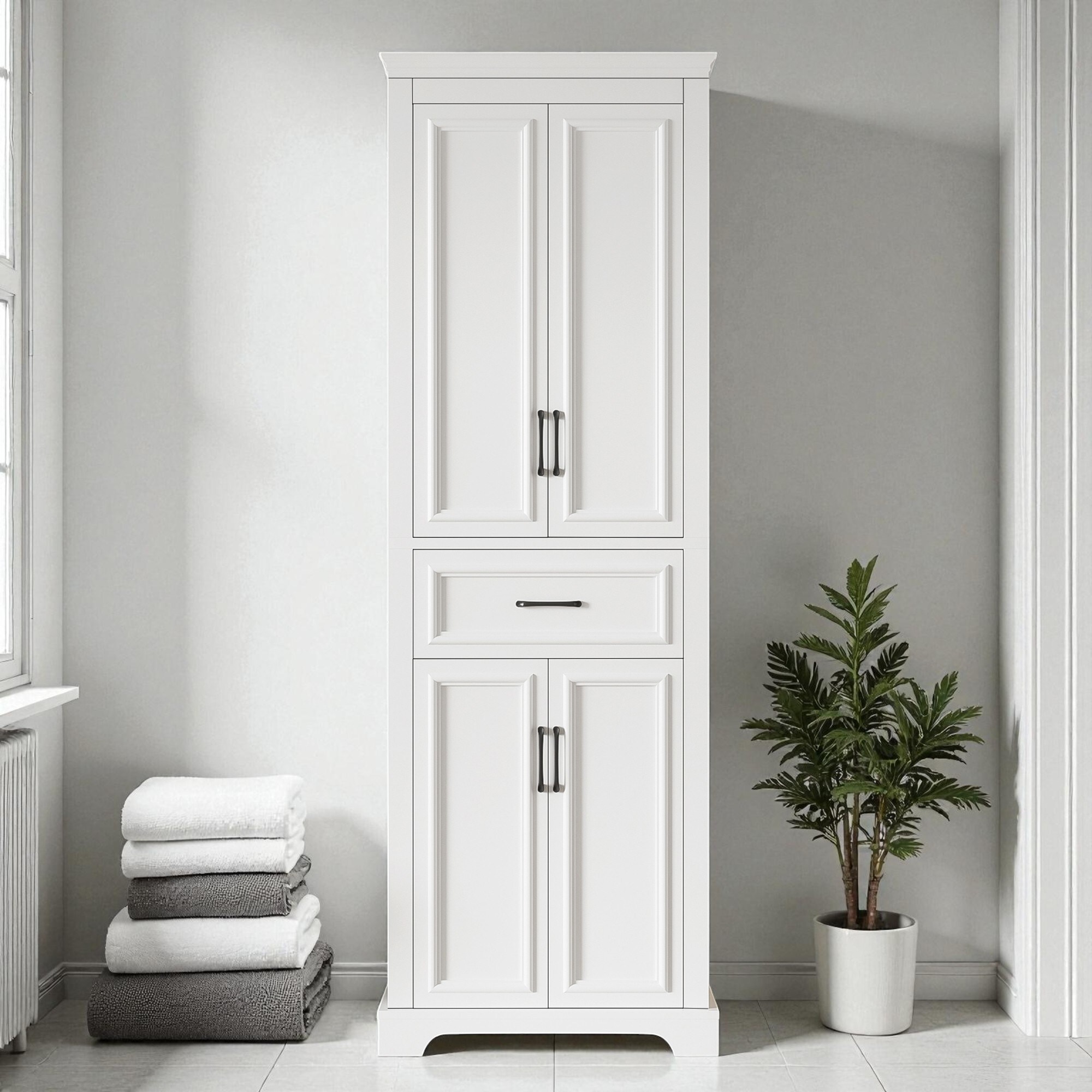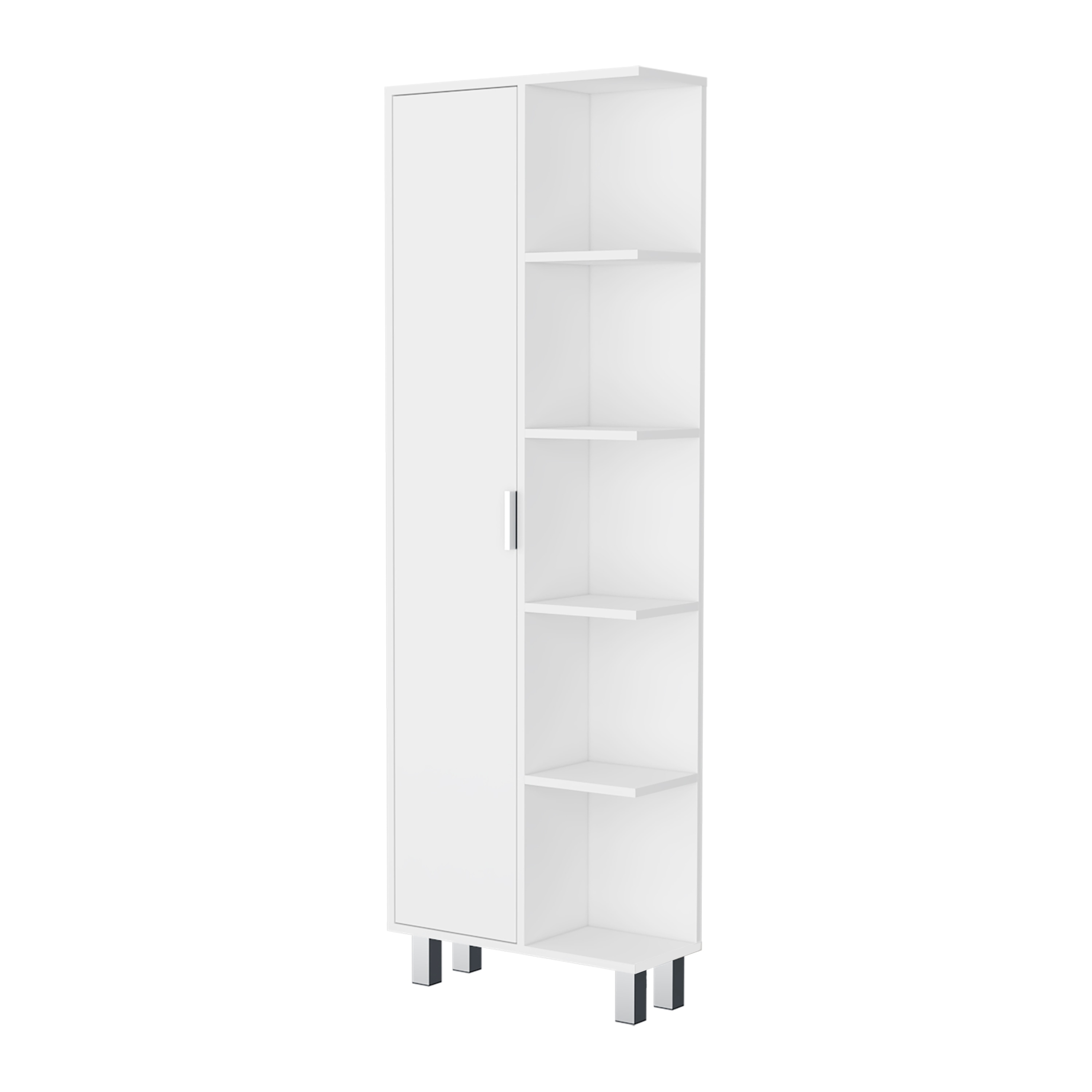Linen Cabinet, With 1 Door And 9 Shelves, White