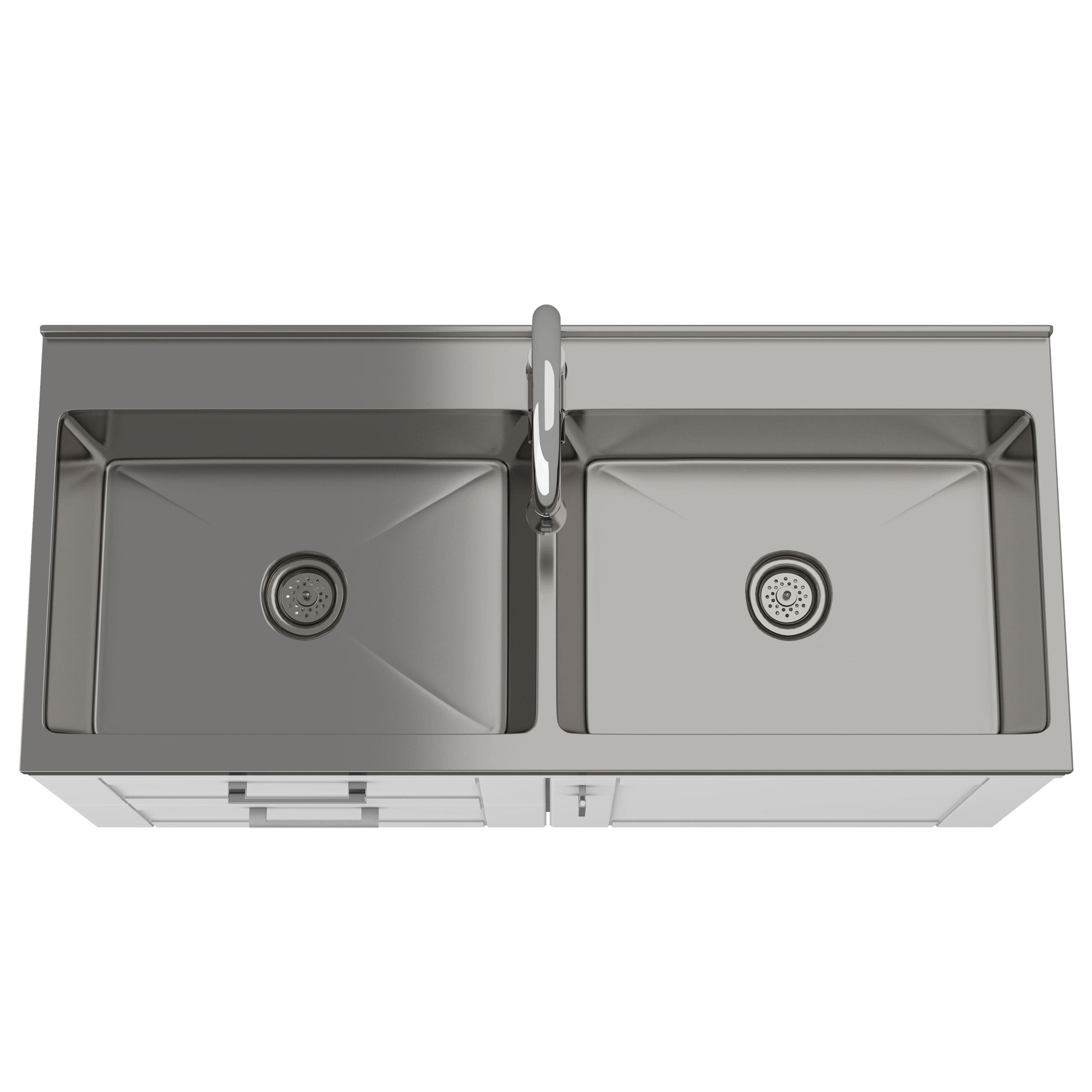 Modern Wide Shaker - 46" Laundry Cabinet with Faucet and Stainless Steel Sink - White