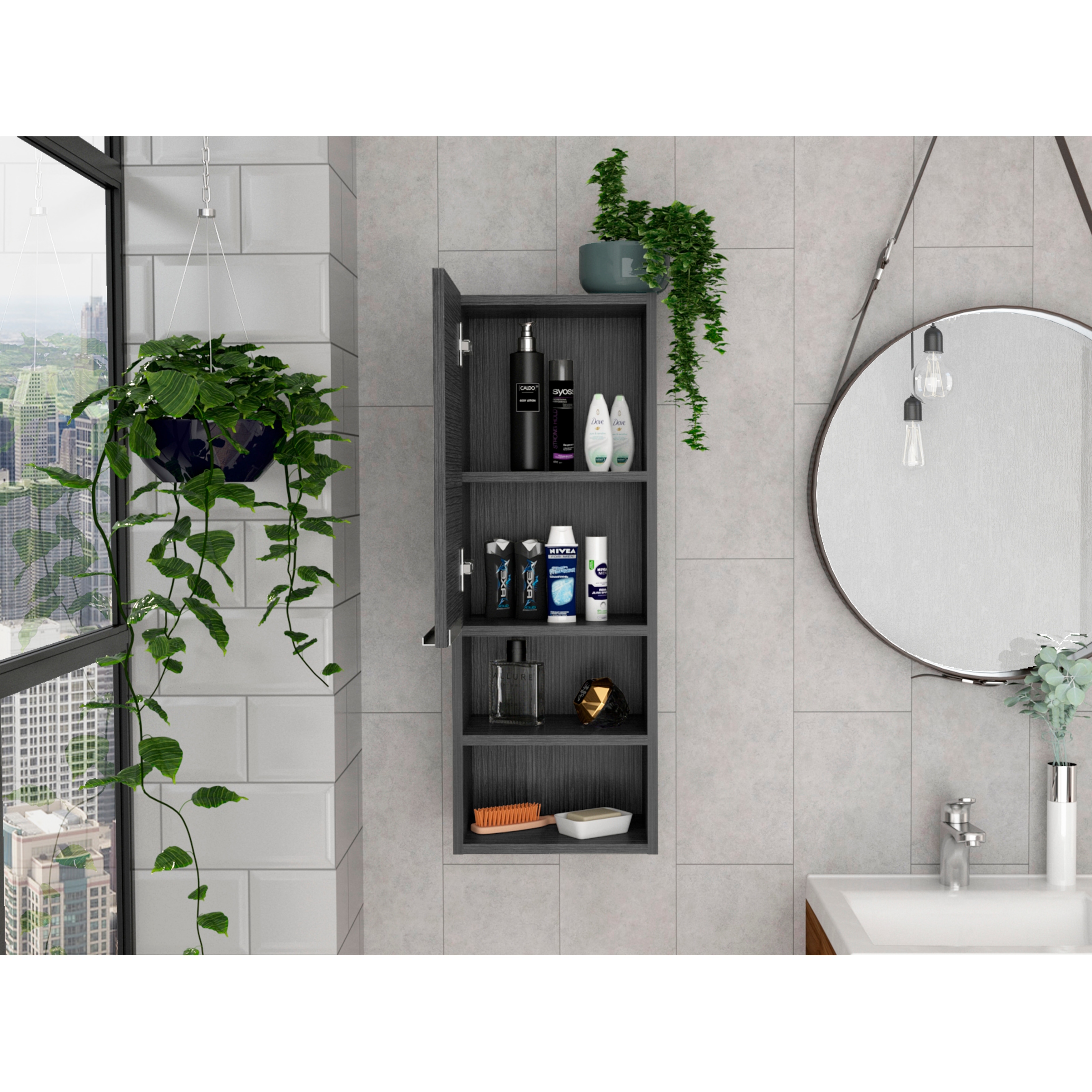 Linen Cabinet, Two Interior Shelves, Two Open Shelves, Single Door