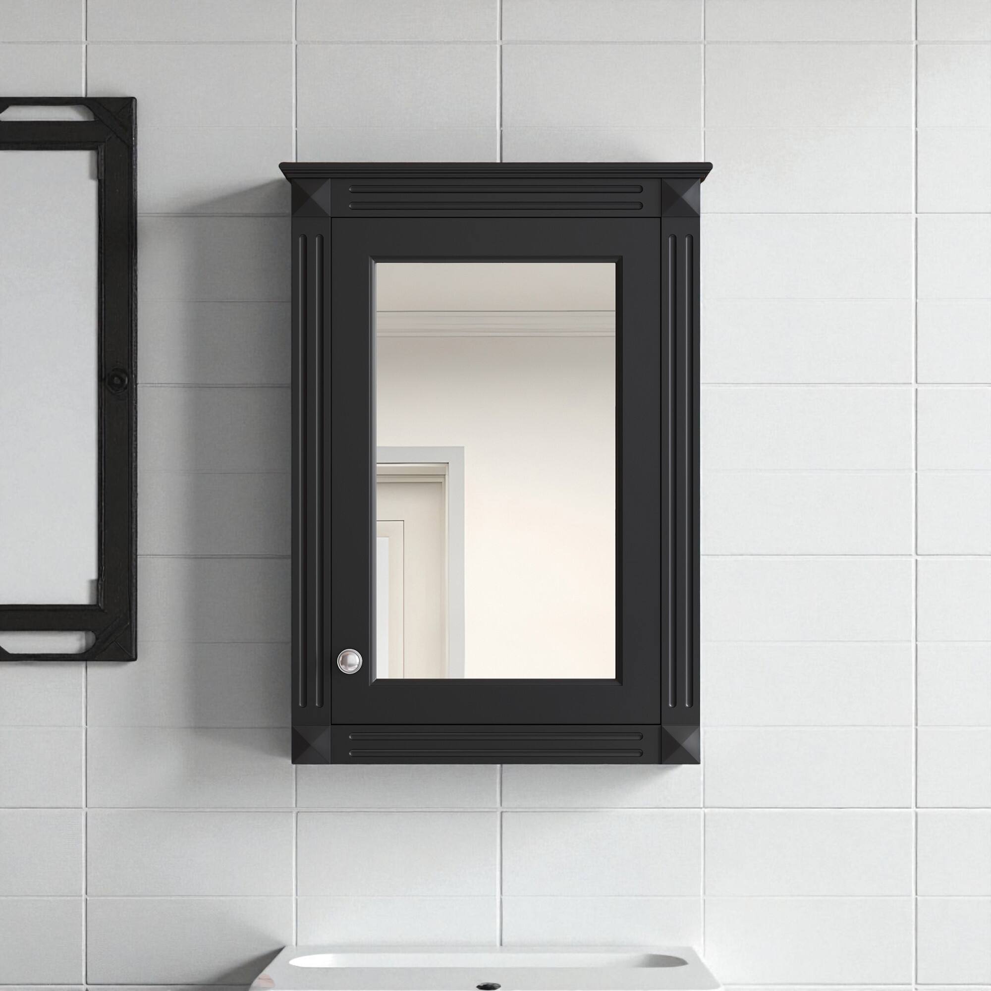 Modern Bathroom Wall Cabinet Medicine Cabinet with Mirror, 3 Open Compartments, Adjustable Shelf and Vintage Handle