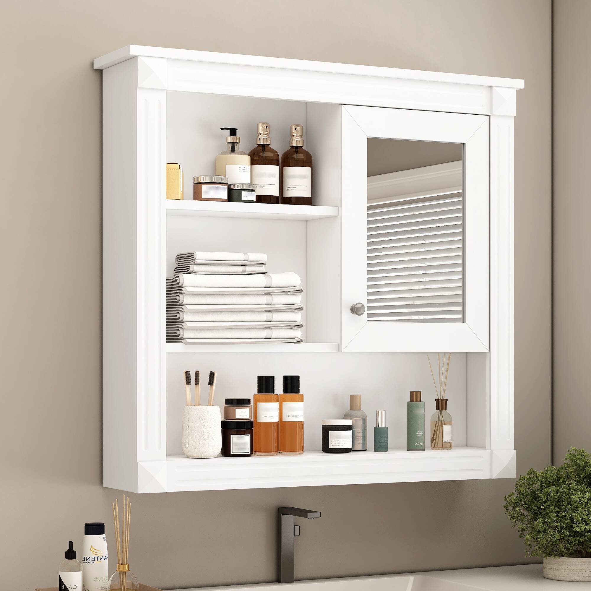 Costway Bathroom Wall Mounted Medicine Cabinet with Louvered Doors & - See Details