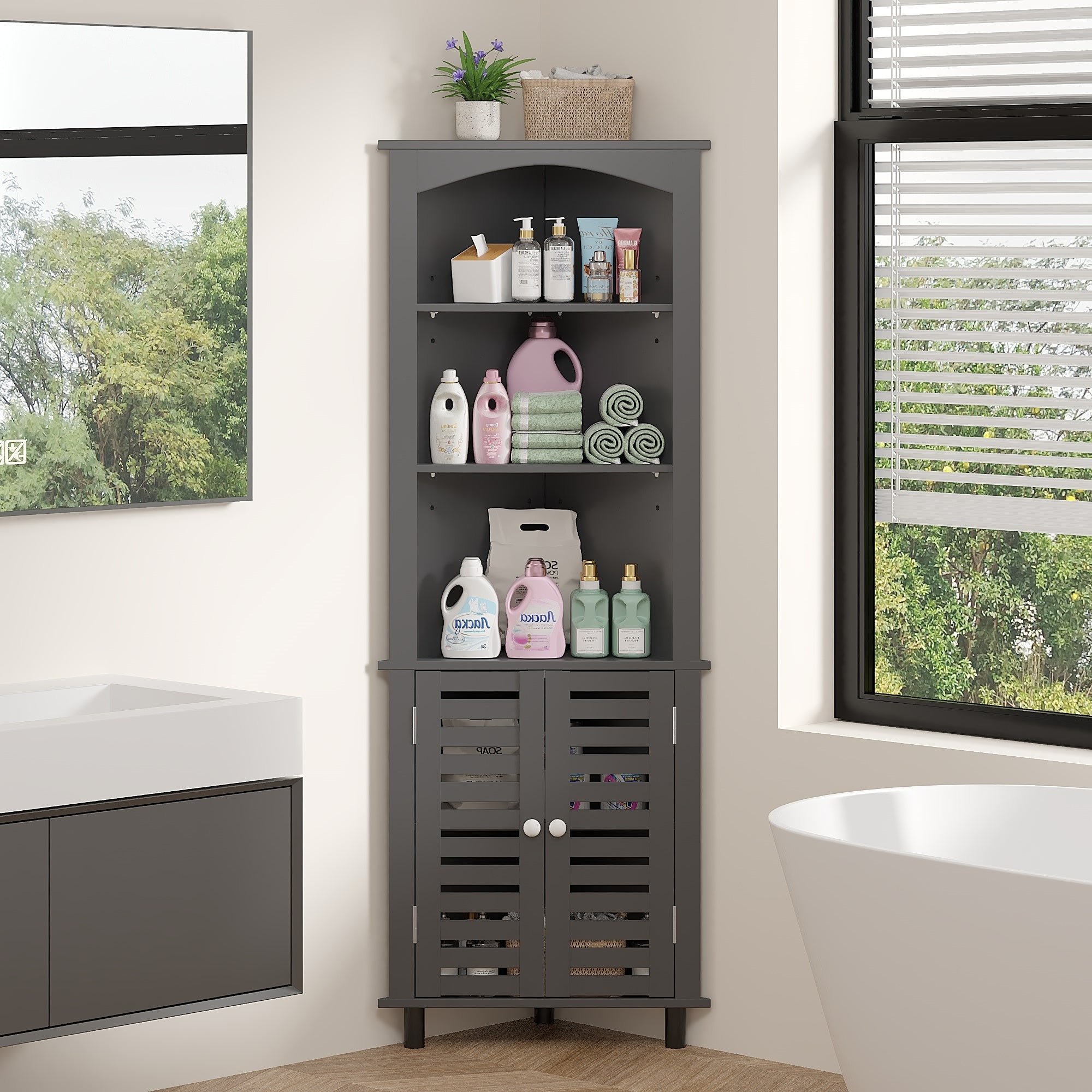 Modern Multi-Functional Tall Corner Bathroom Cabinet with Adjustable Shelves and Two Doors
