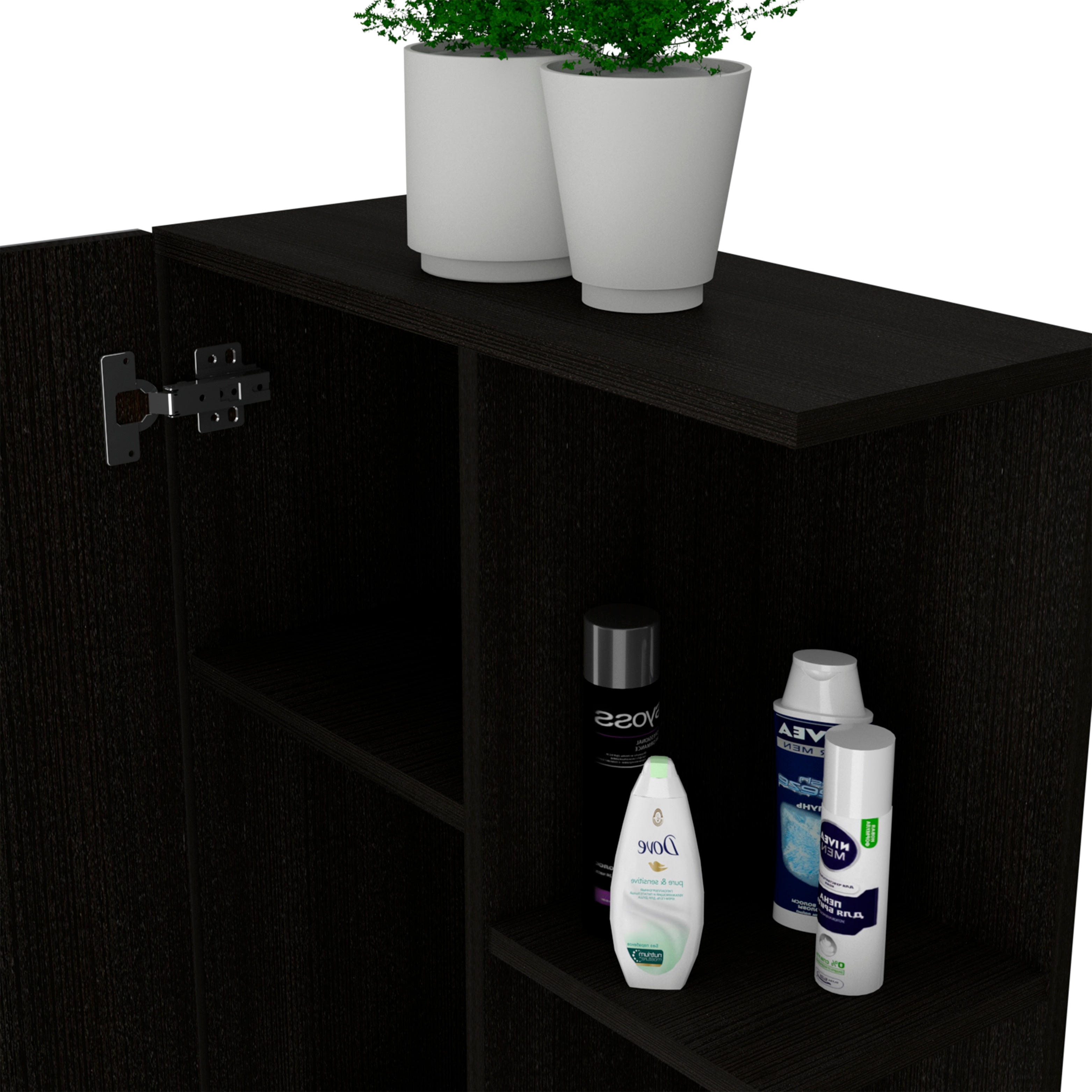 Mirror Linen Cabinet Reno,Four Interior Shelves, Black Wengue Finish