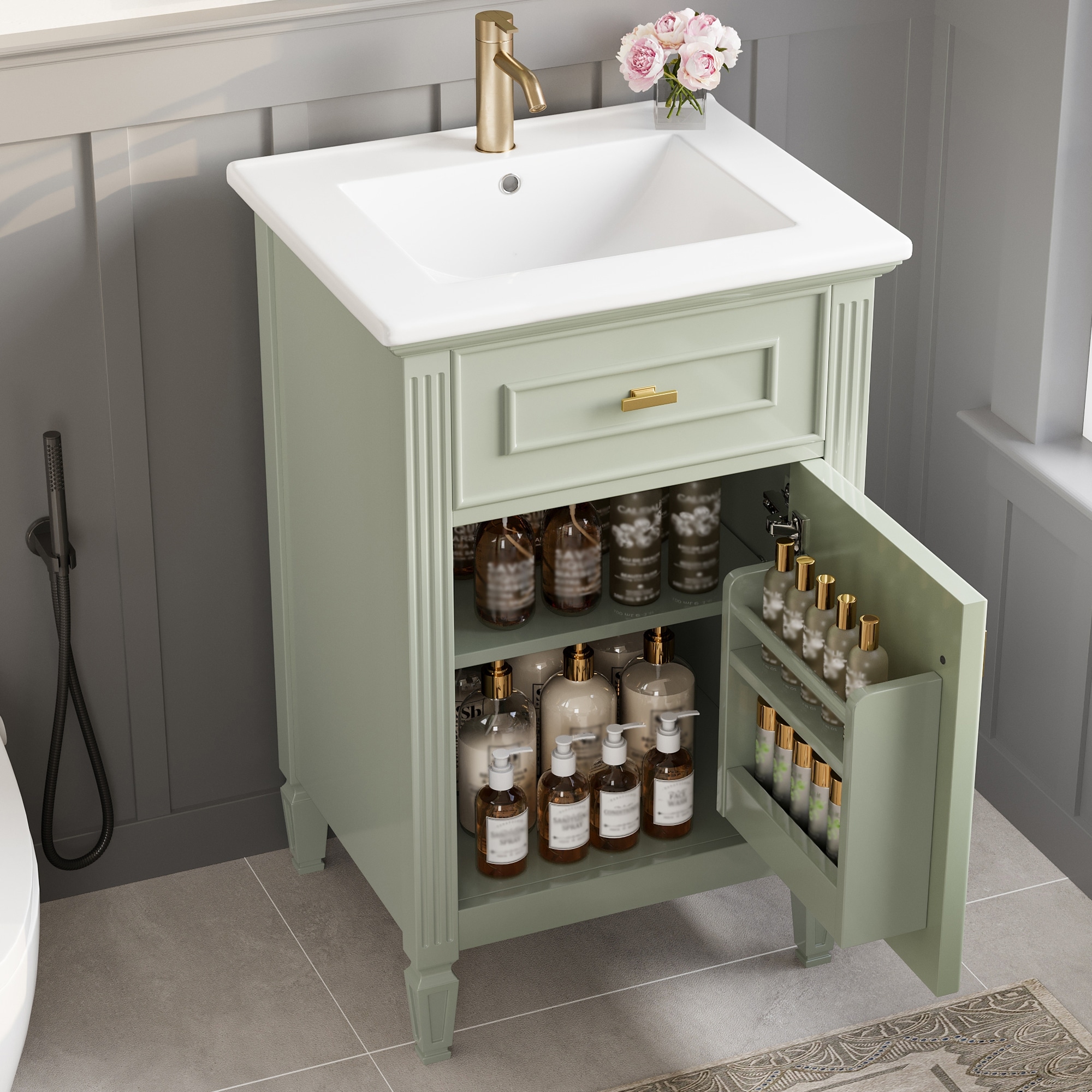 20-Inch Green Bathroom Vanity with Sink, Solid Wood Legs, Adjustable Shelf, Tilt-Out Drawer, Zinc Alloy Knobs, Modern Freestandi