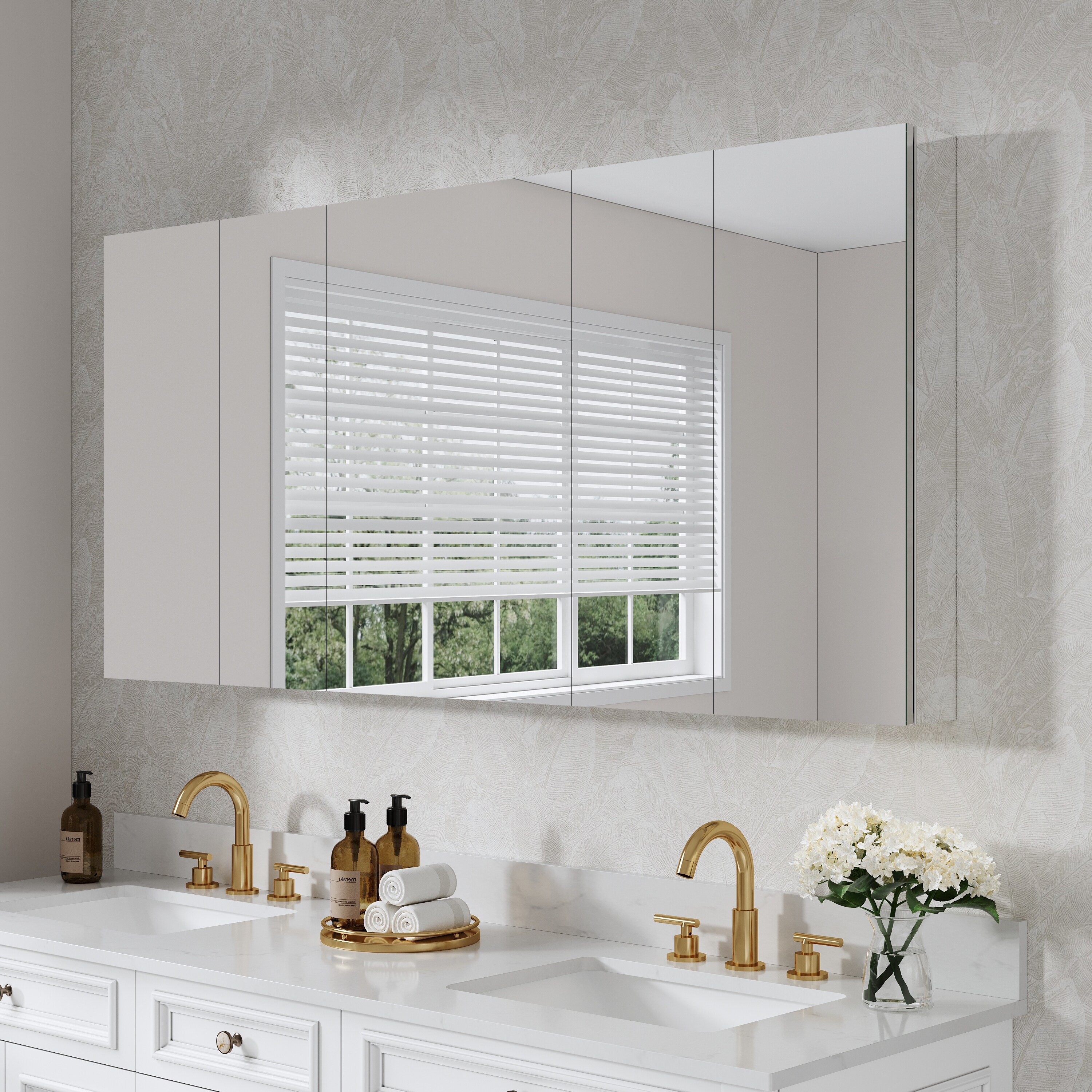 Infinity Corner Medicine Cabinet with Mirror Stainless Steel 31.5" x 12" Triple Shelf Cabinet Left Open