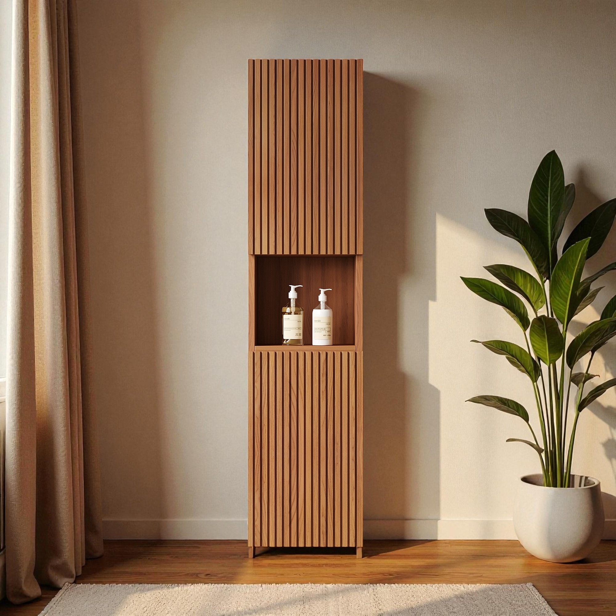 59" Tall Wall Mounted Bathroom Cabinet with Doors & Shelves, Narrow Waterproof Storage Cabinet for Small Spaces