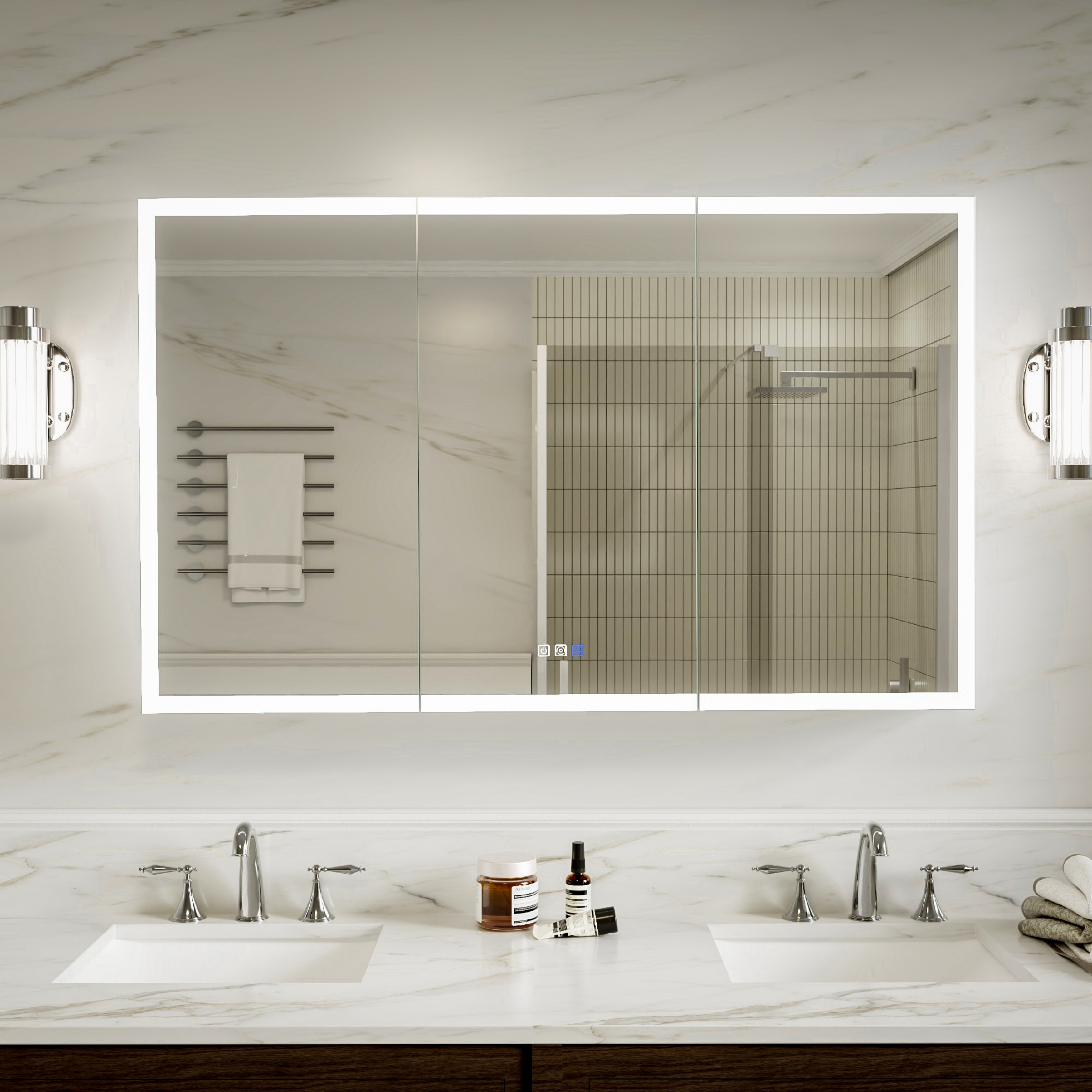 Modland 36"-48"W x 30"H LED Bathroom Medicine Cabinet Dimmable Anti-Fog,Recessed or Surface Mount