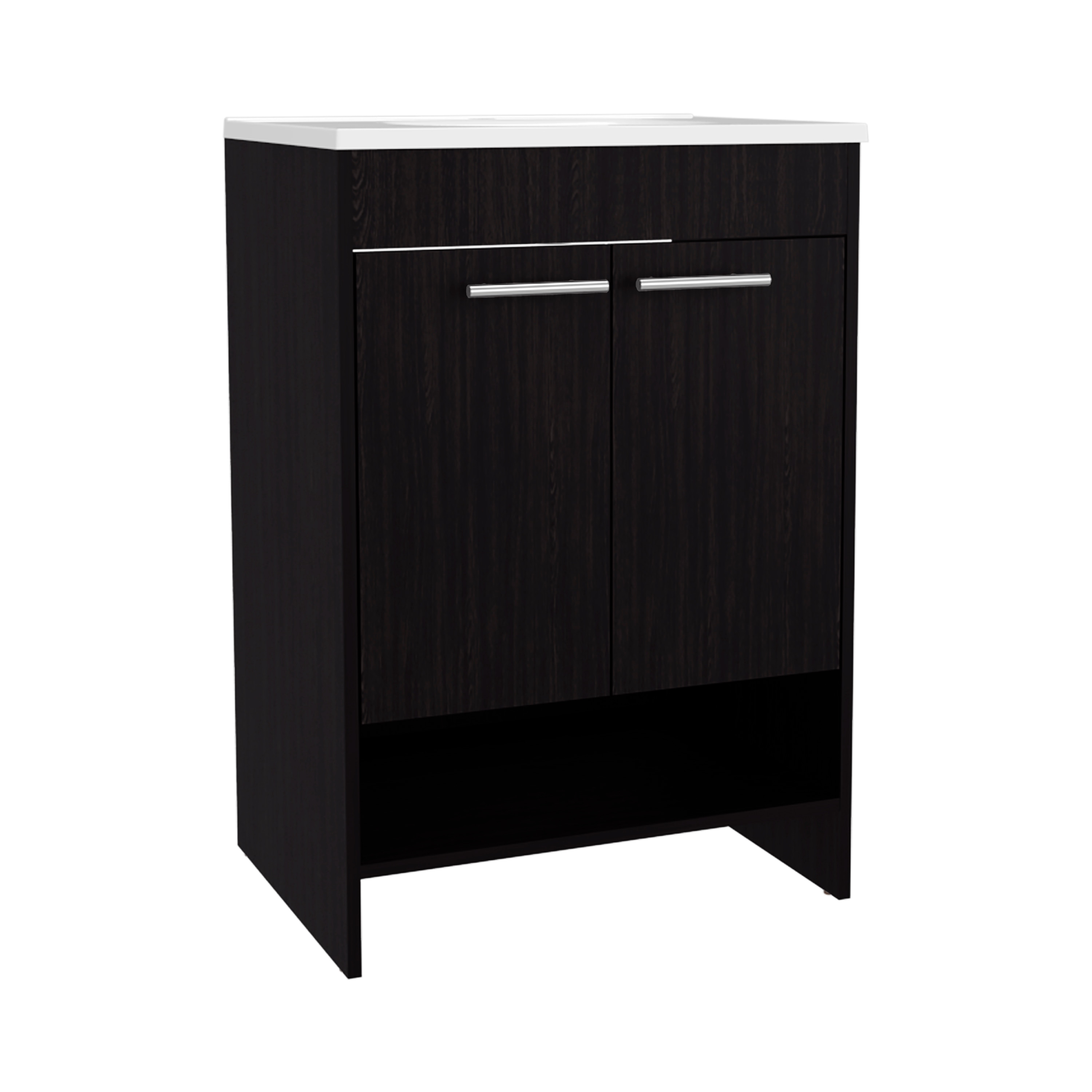 Bathroom Vanity with Sink, 2 Doors, 2 Shelves, Black Wengue