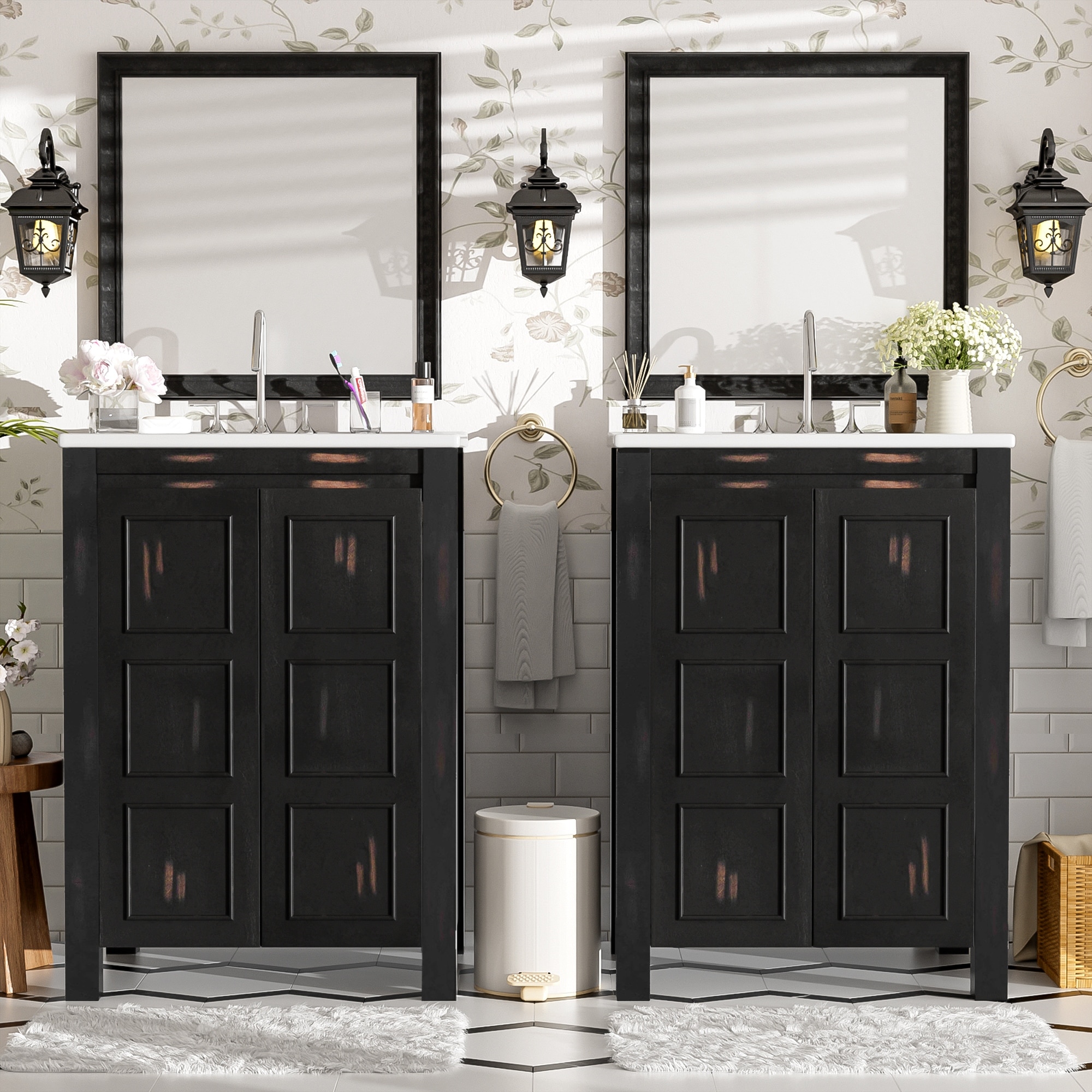 48" Vintage Style Bathroom Vanity Combo with Double Vanities (separate), Double Ceramic Sinks, storage Shelf and Soft Close Door