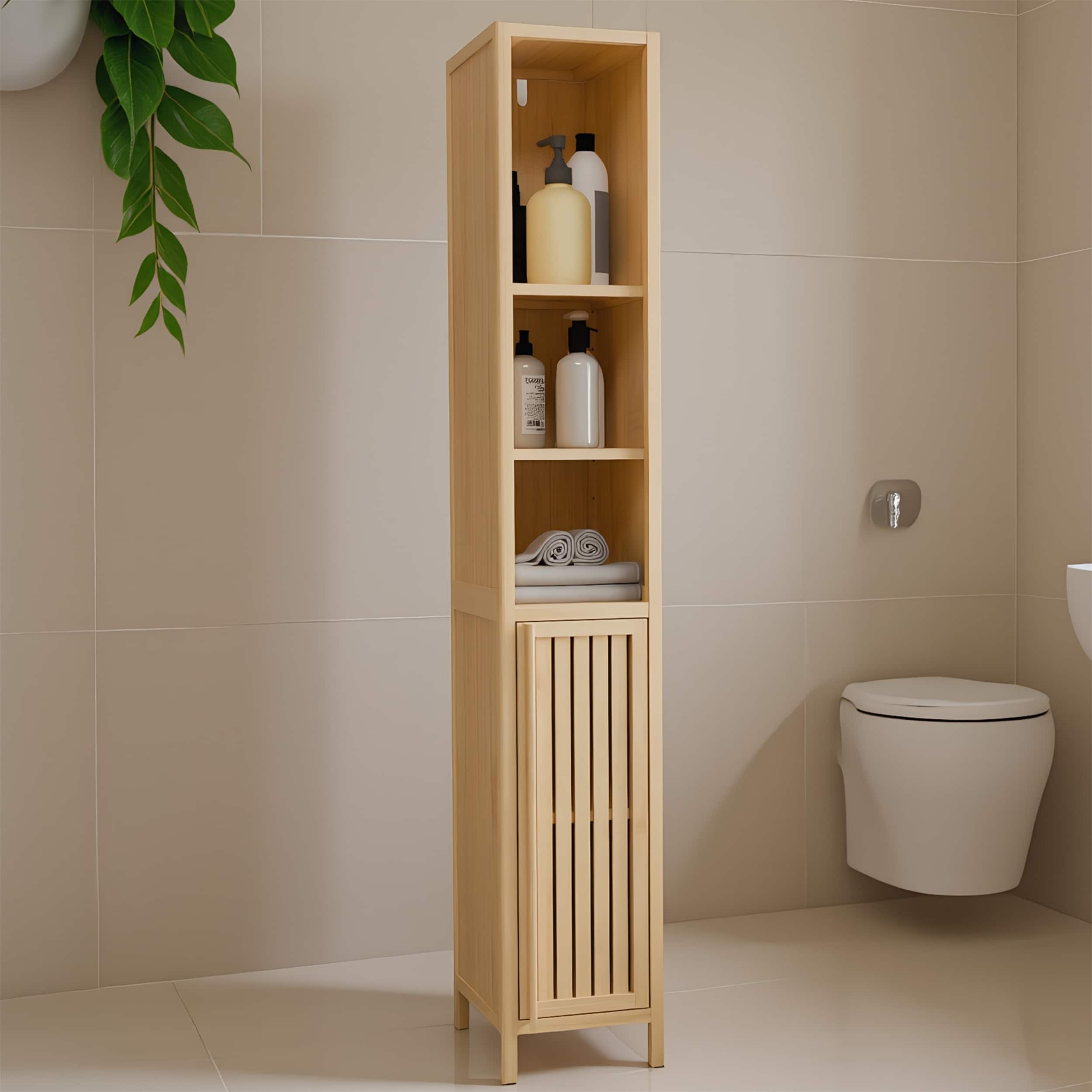 Narrow Tall Corner Cabinet Tall Bathroom Cabinet Freestanding Storage Cabinet with Drawer and Acrylic Door
