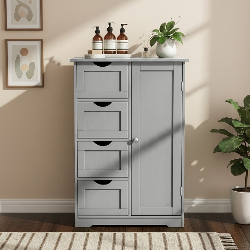 Homall Wooden Bathroom Cabinet, Freestanding Storage Cabinet with 4 Drawers and 1 Cupboard