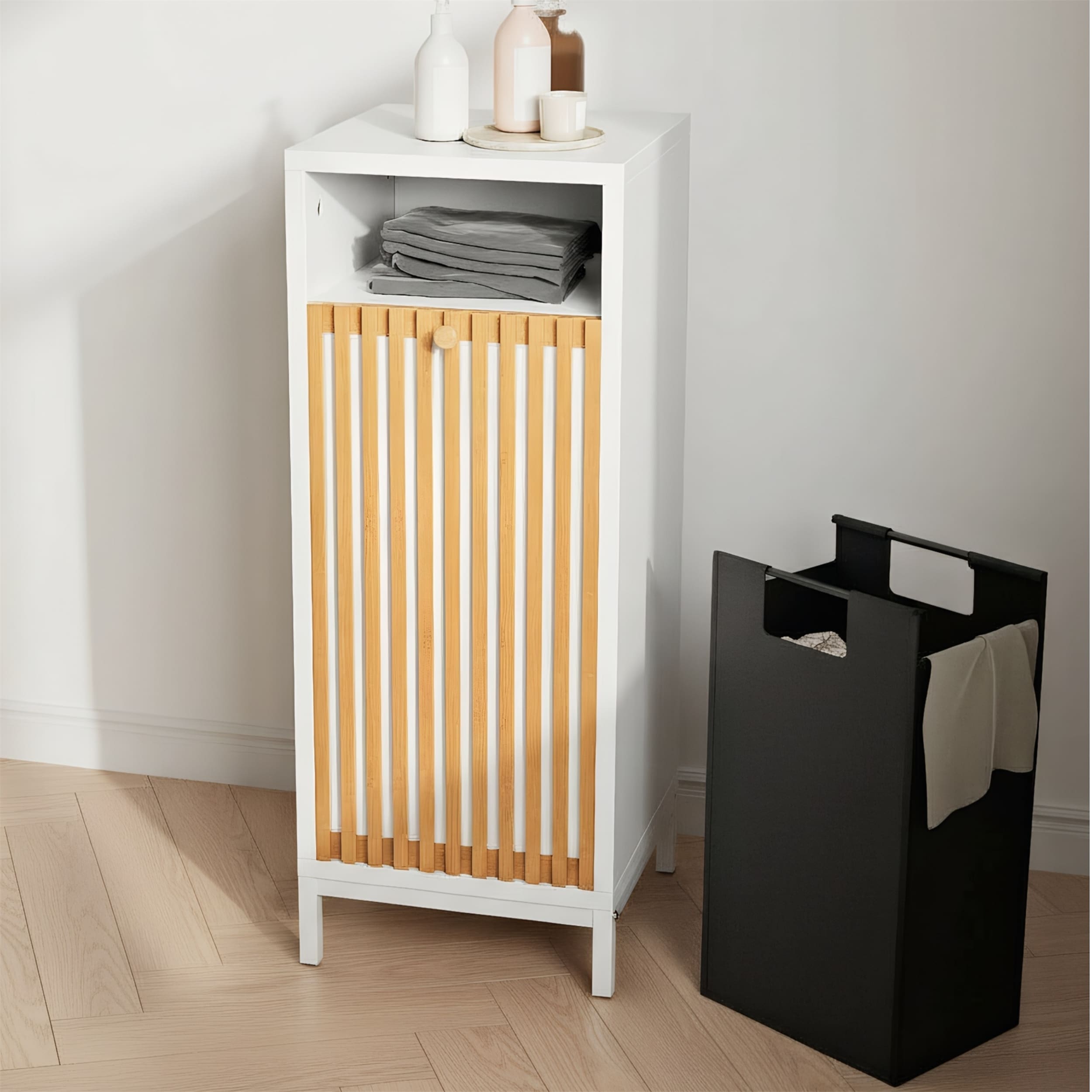 Bamboo Storage Cabinet with Laundry Hamper, Freestanding Organizer