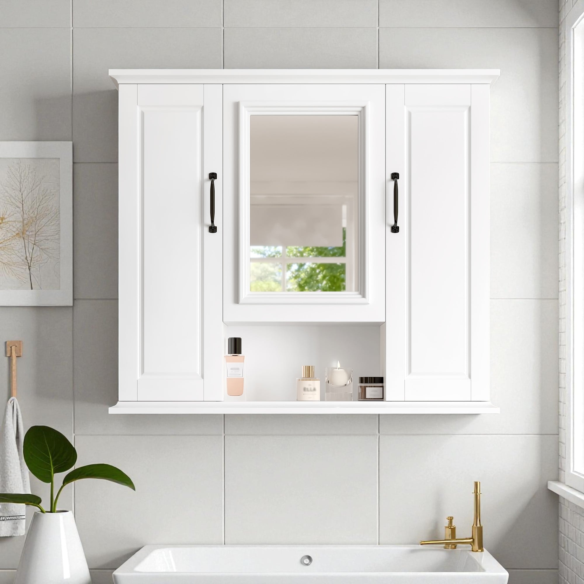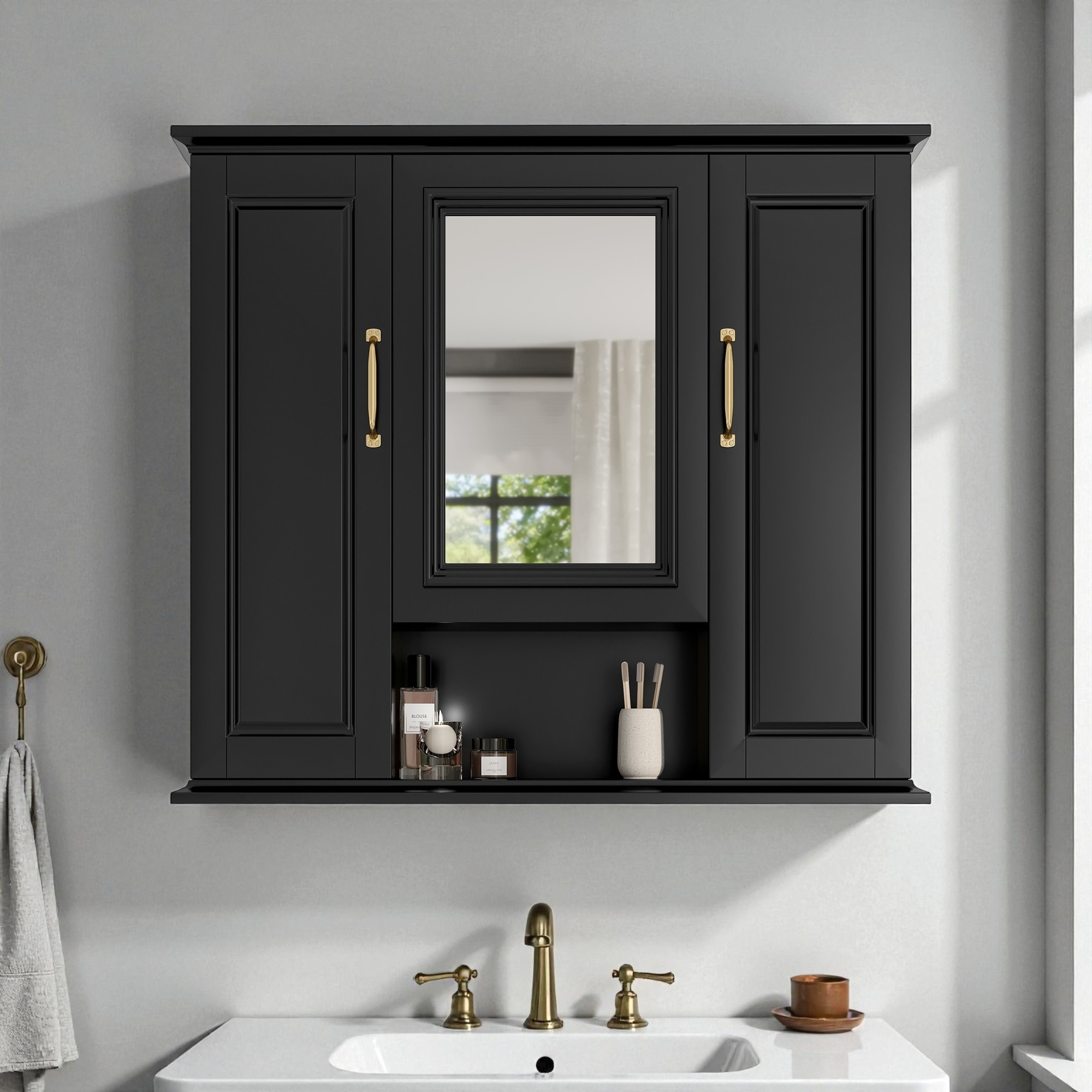 36 Inch Wall Mounted Medicine Cabinet with Mirror, Bathroom Storage Cabinet with 3 Doors and Adjustable Shelves