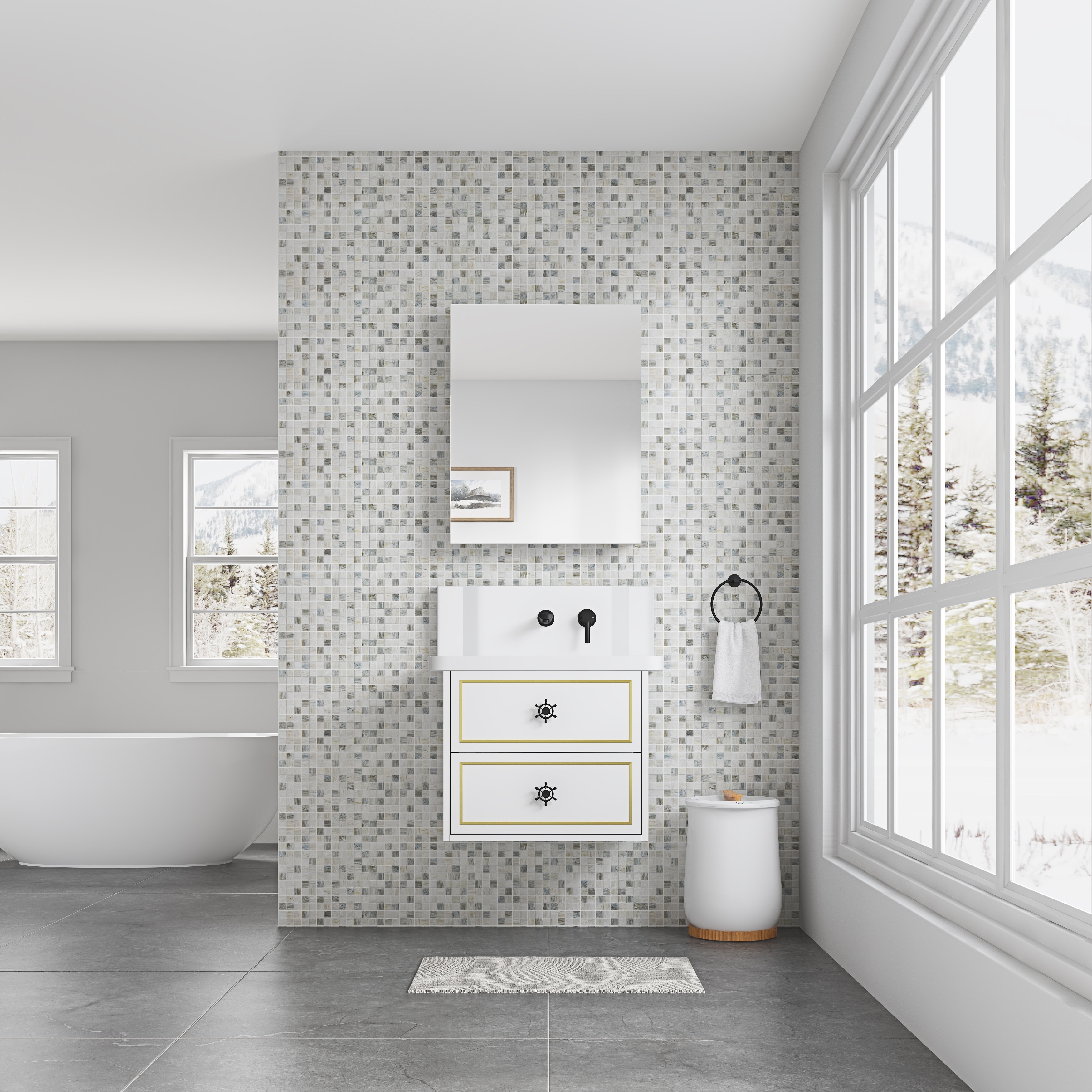 24 Inch Wall-mounted Bathroom Vanity (Only the Cabinet Body, No Top Sink)