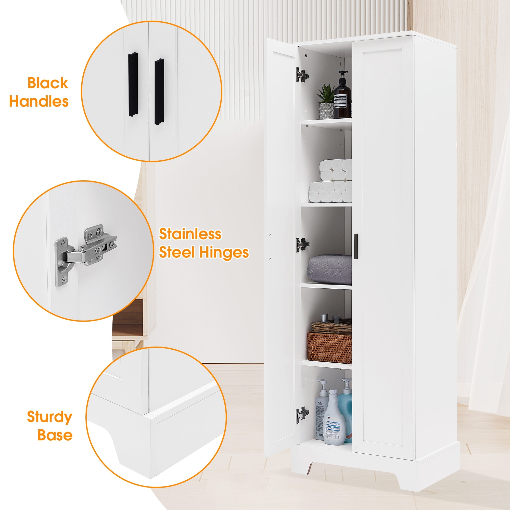 72" Multi-Purpose Freestanding White Linen Tower - Ideal as Bathroom Organizer, Toilet Paper Cabinet and Kitchen Cabinet