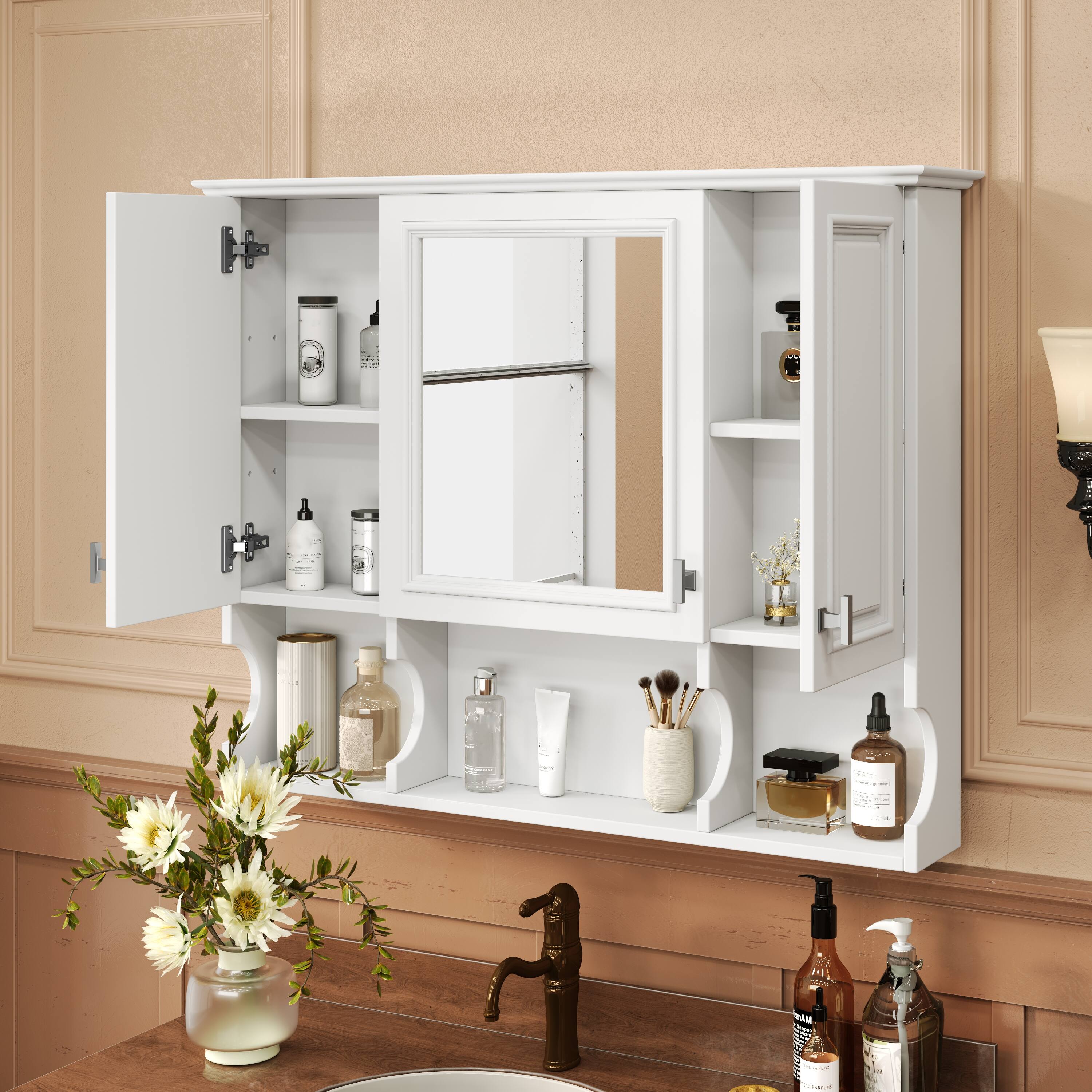 35'' x 28'' Wall Mounted Bathroom Medicine Cabinet, Modern Bathroom Wall Cabinet with Mirror, Mirror Cabinet with Open Shelves