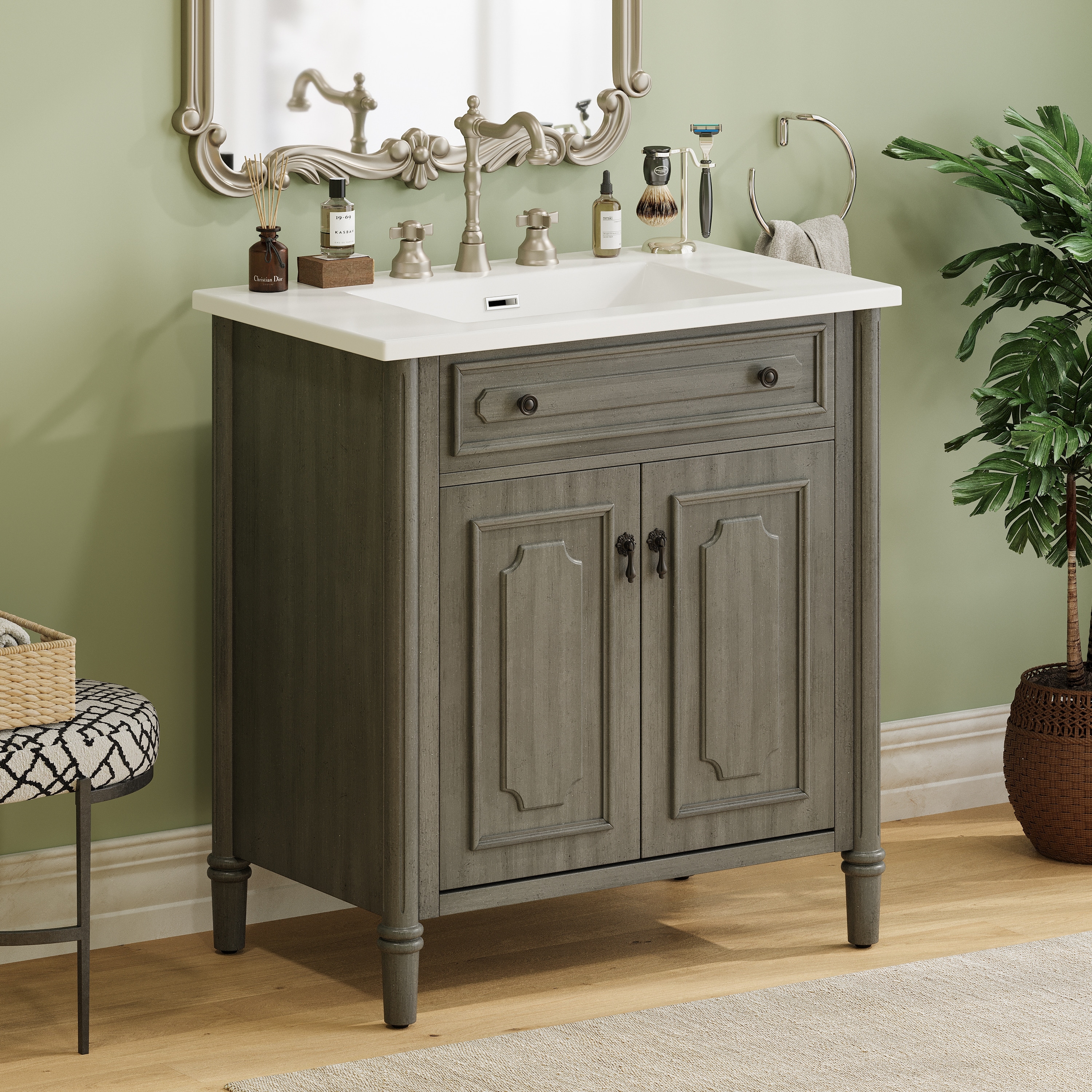 31" Vintage Bathroom Vanity with Sink, Rustic Bathroom Cabinet with Soft Close Doors and Adjustable Shelf, Curved Profile Design