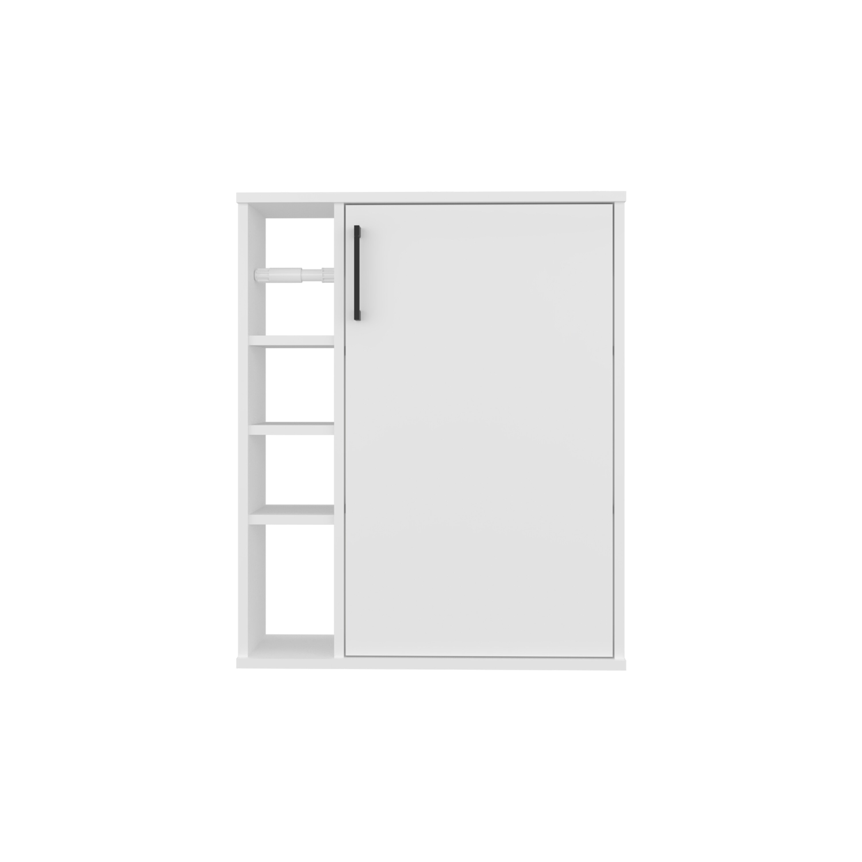 Wall-Mounted Medicine Cabinet With 1 Door And 3 Open Shelves, Modern Bathroom Storage Organizer, White