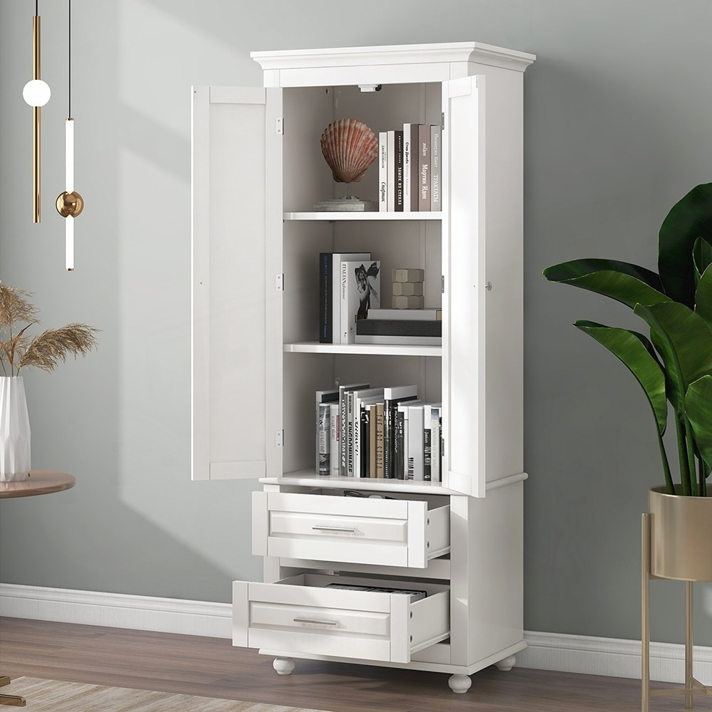 Tall Storage Cabinet with Two Drawers for Bathroom