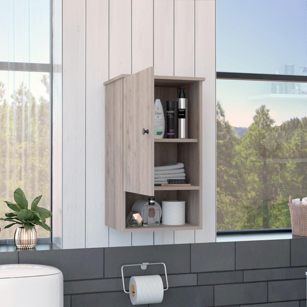 Medicine Single Door Cabinet 28" H, One Shelf, Two Interior Shelves, Light Gray