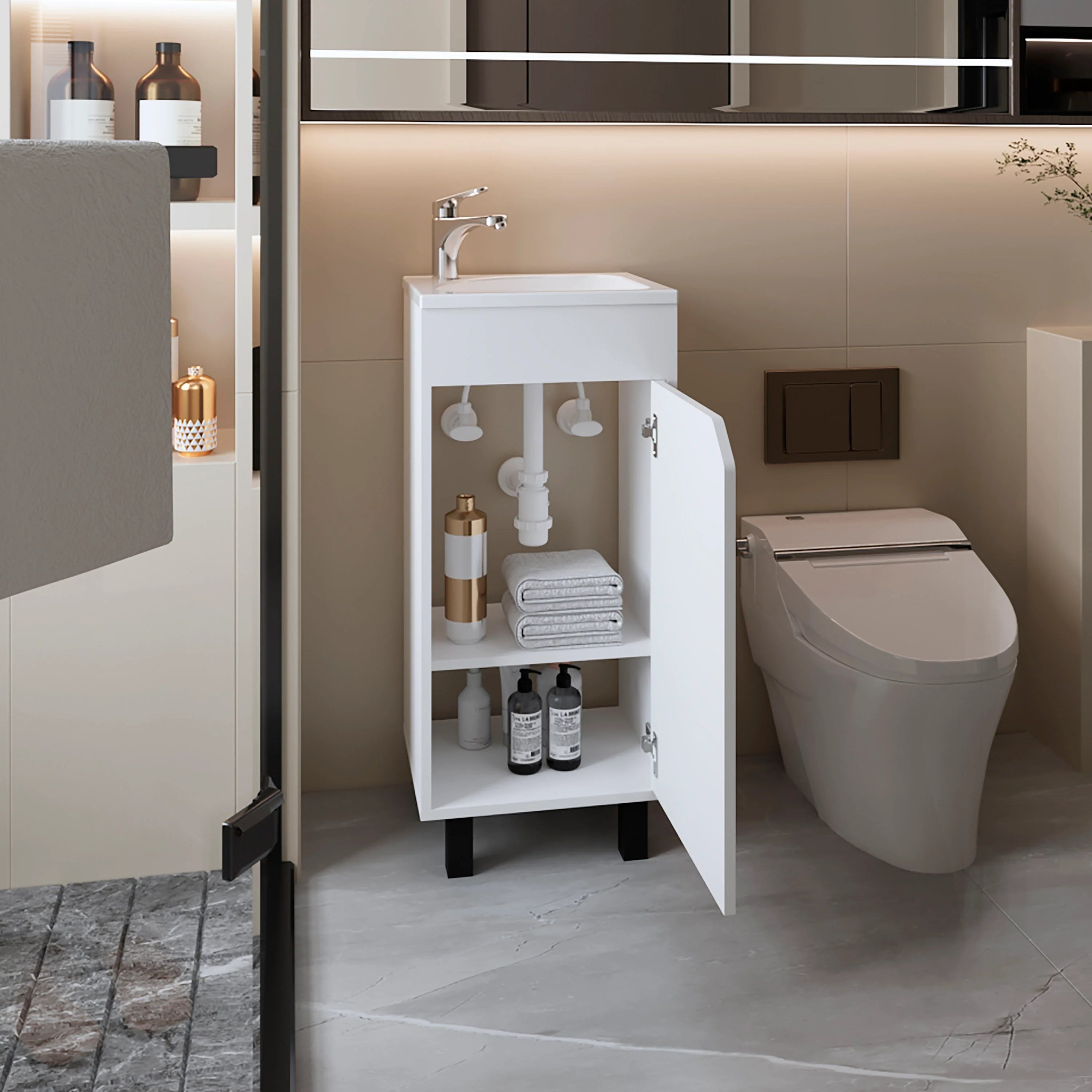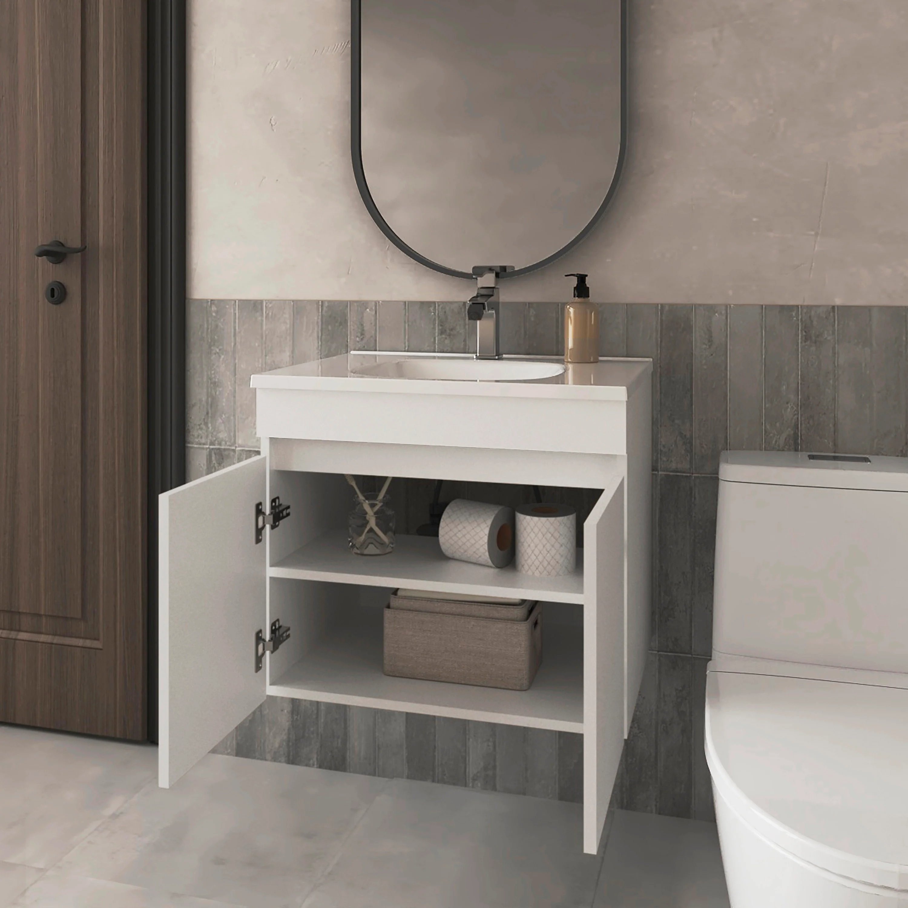 White 2-Door Floating Bathroom Vanity Set with Sink and Mirror