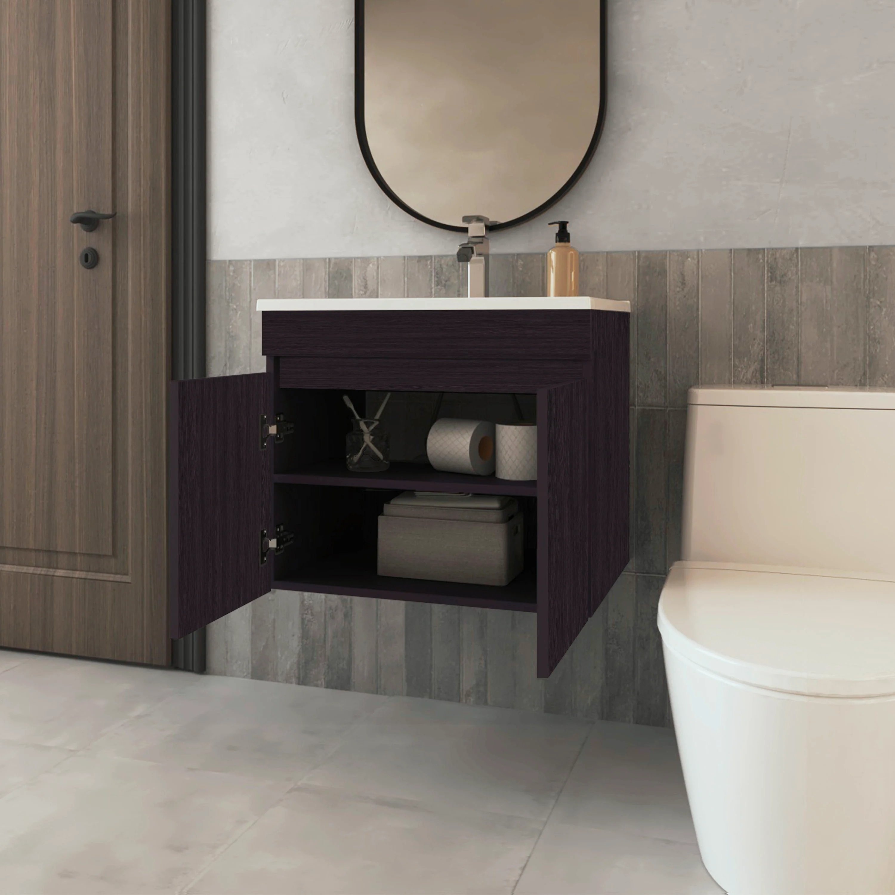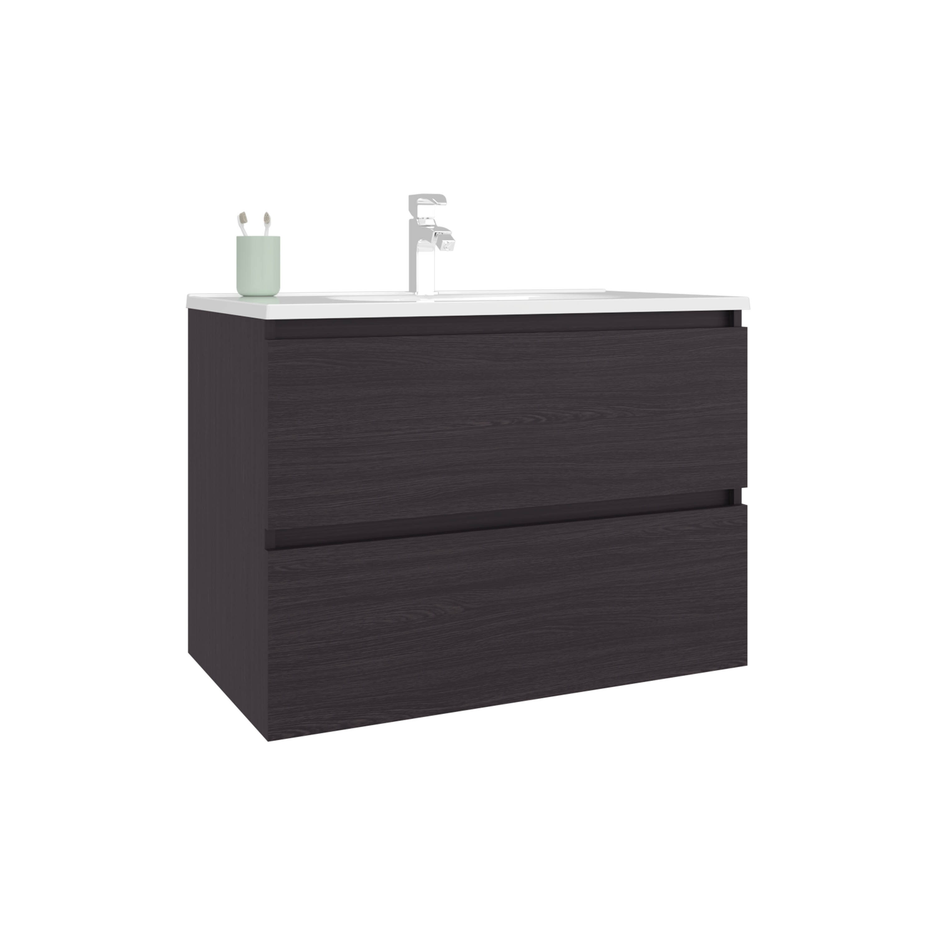 Bathroom Vanity with Sink, 2 Drawers, Black Wengue