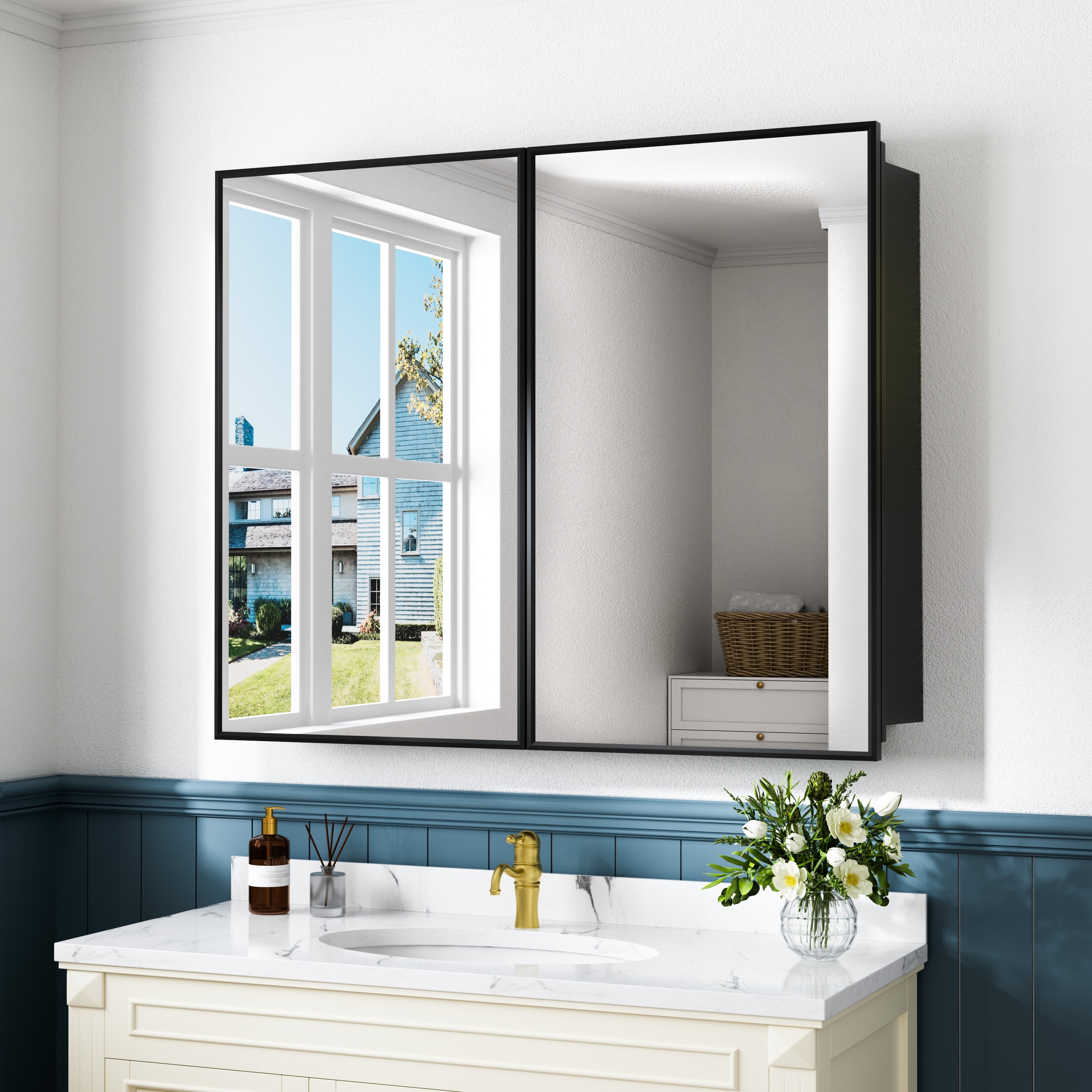 Elise Iron Medicine Cabinet with Mirror, Adjustable Shelves, Recessed or Wall Mount