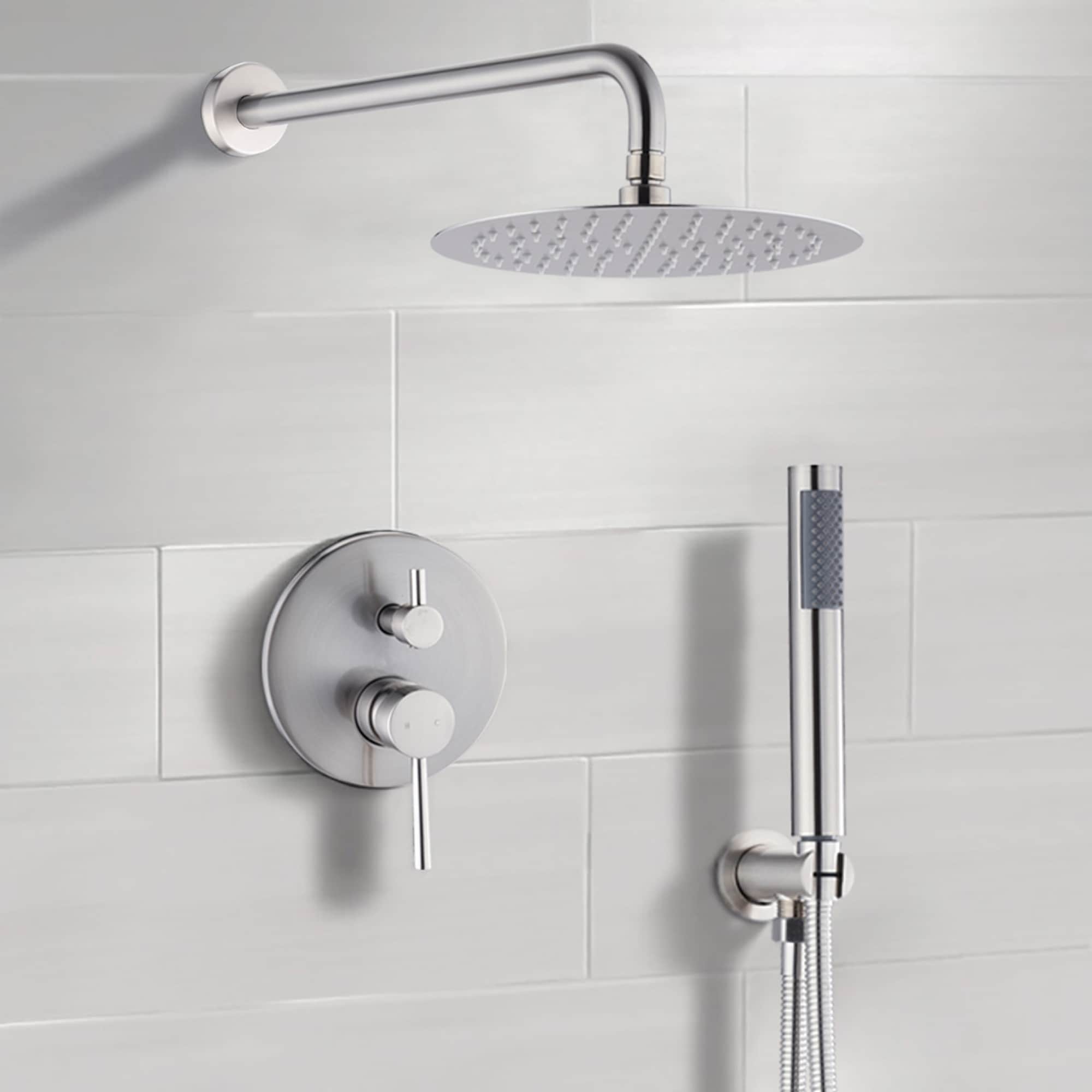 Roomfitters Brushed Nickel Shower Faucet Set, Wall Mounted 2-Way Rainfall Shower System with Handheld Spray, Valve Included