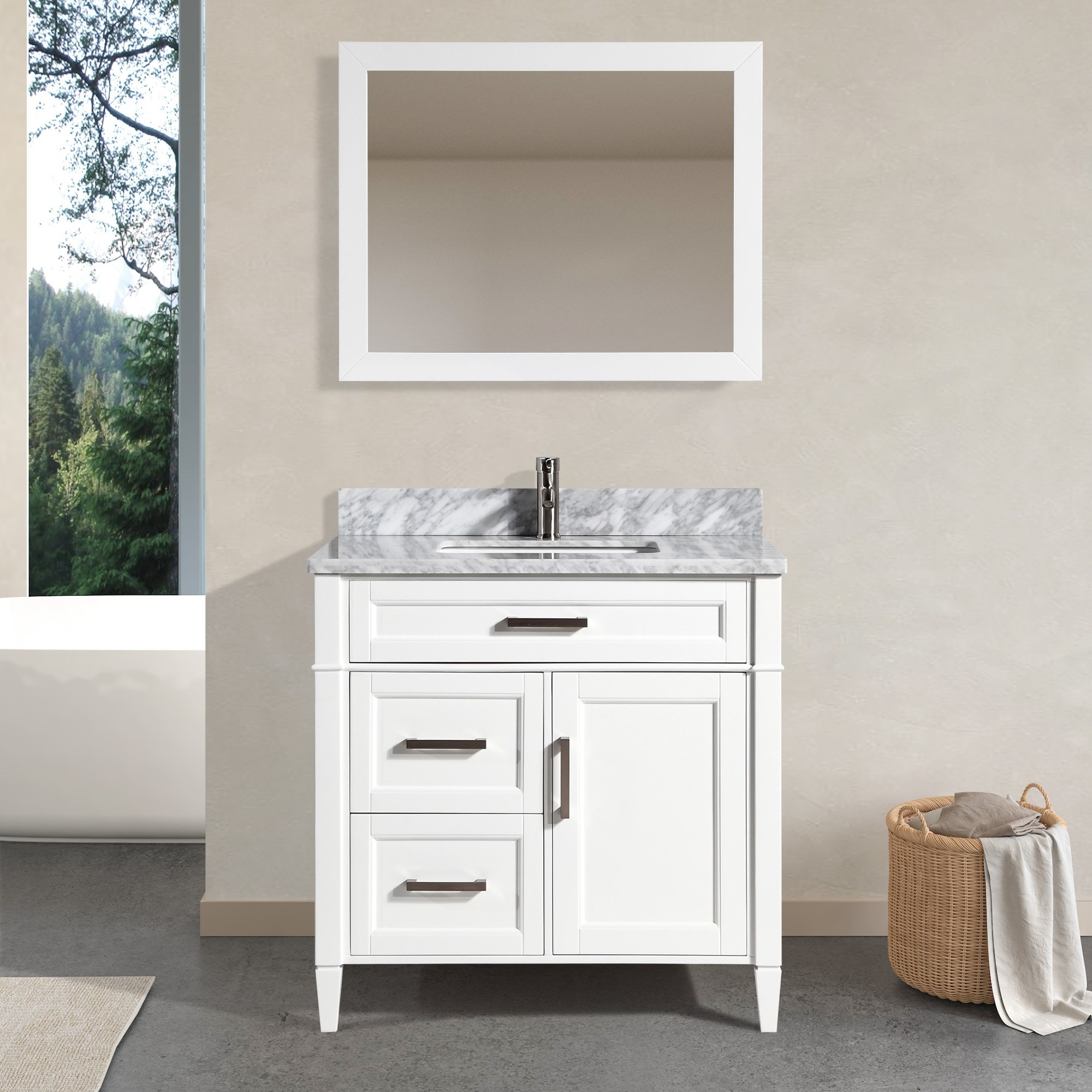 Vanity Art 36-Inch Single Sink Bathroom Vanity Set Carrara Marble Stone Top 3 Drawers 1 Shelf Undermount Sink with Free Mirror