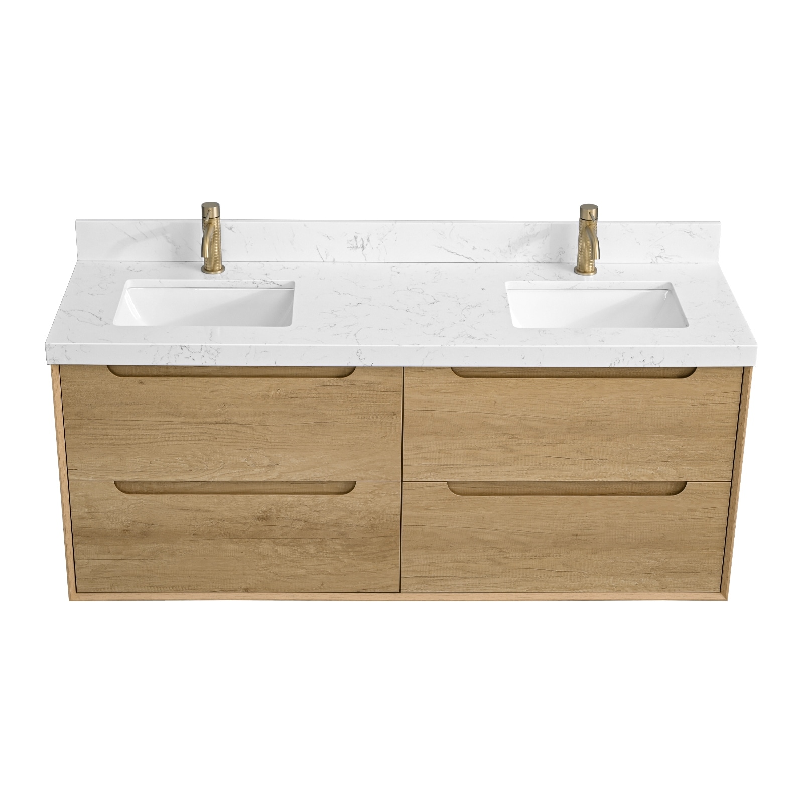 AuroraSky 60/ 72/ 84 in. Double Sink Floating Bath Vanity in Natural Oak with White Engineered Stone Top