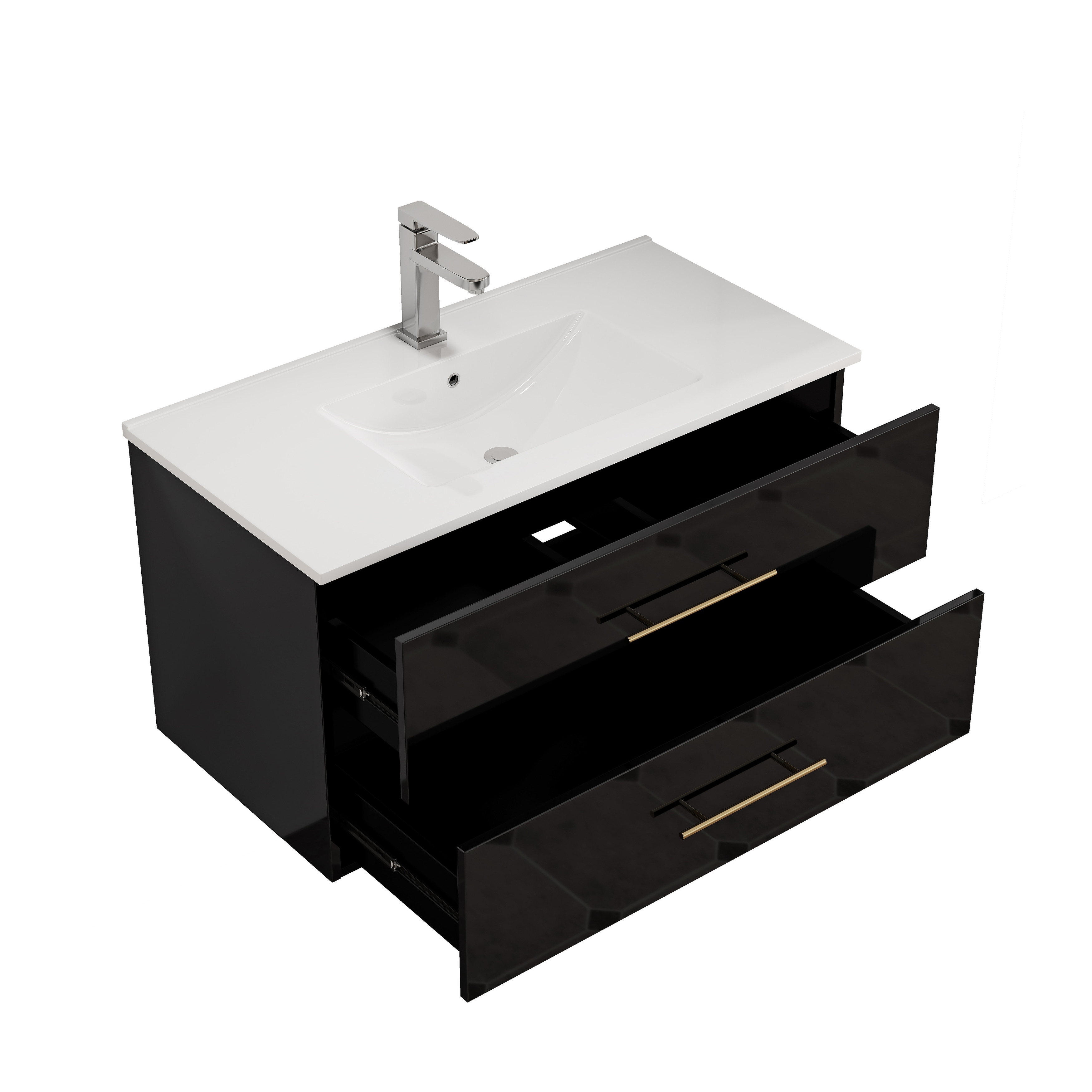 36-Inch Black Gloss Wall-Mounted Bathroom Vanity with Sink Combo