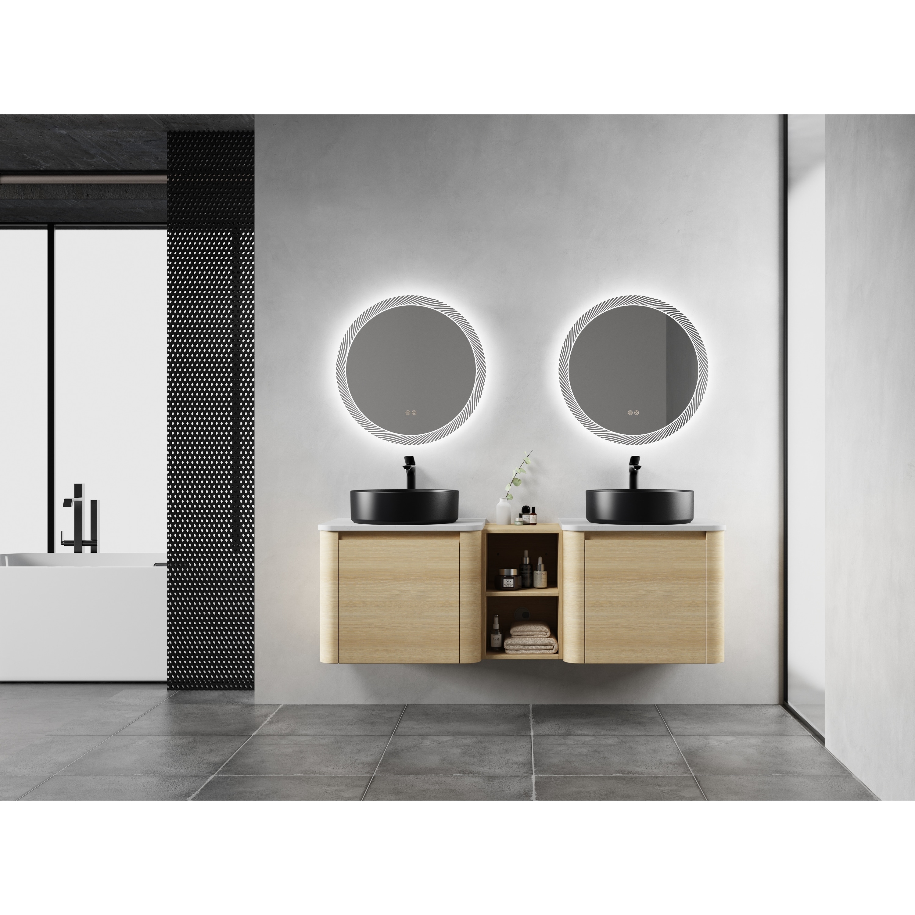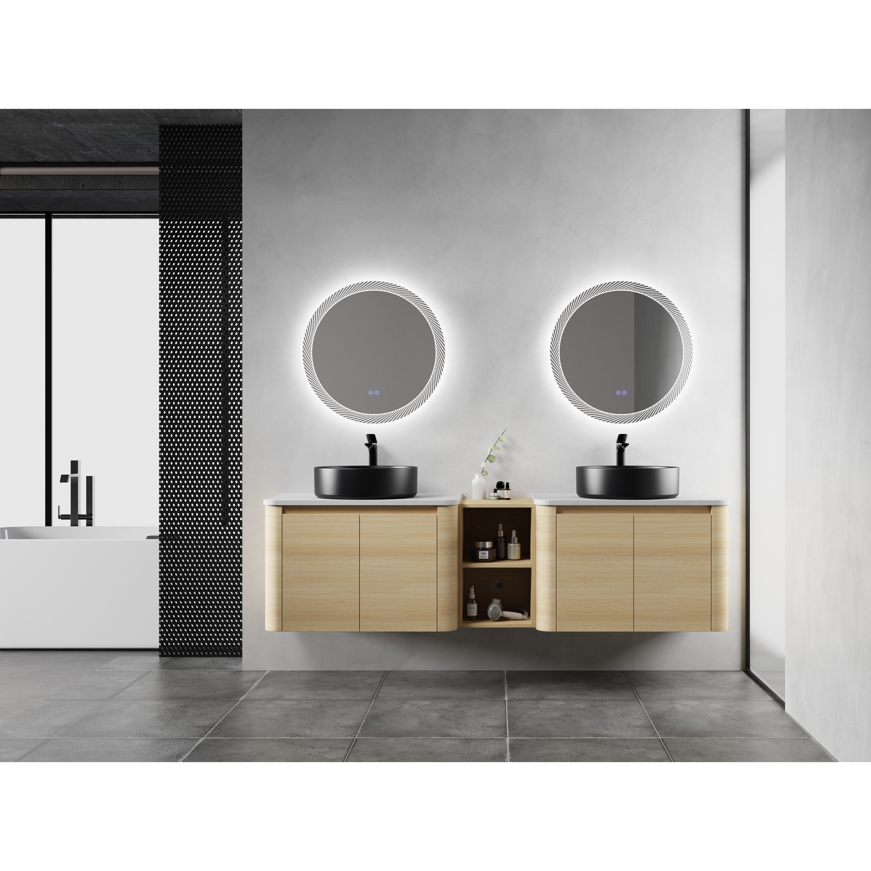 60-Inch Wall-Mounted Bathroom Vanity With Ceramic Art Sink And Storage Shelves
