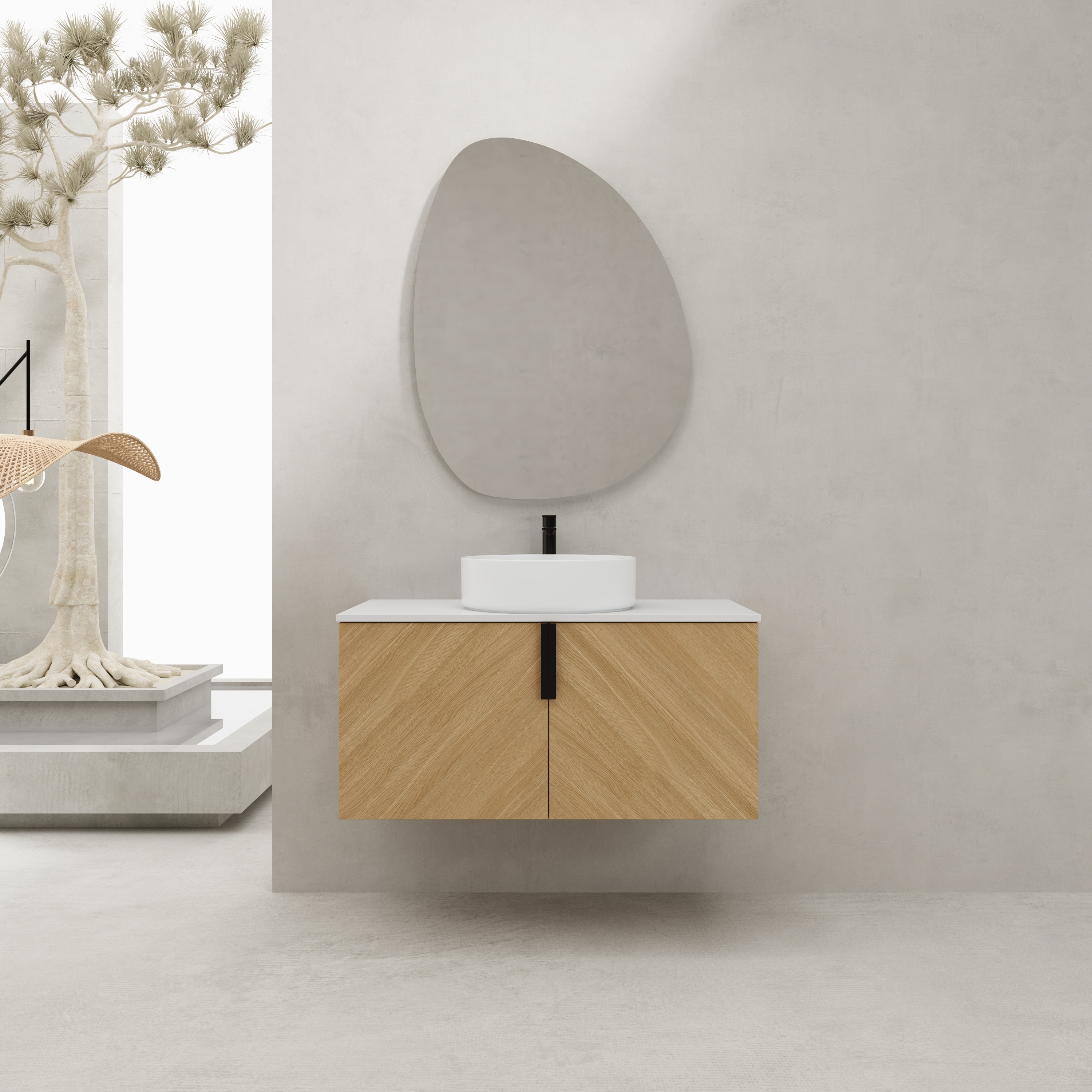 36" Wall-Mounted Bathroom Vanity, Ceramic Art Sink, Artificial Stone Top, 2 Soft-Close Doors, Plywood (KD-Packing)