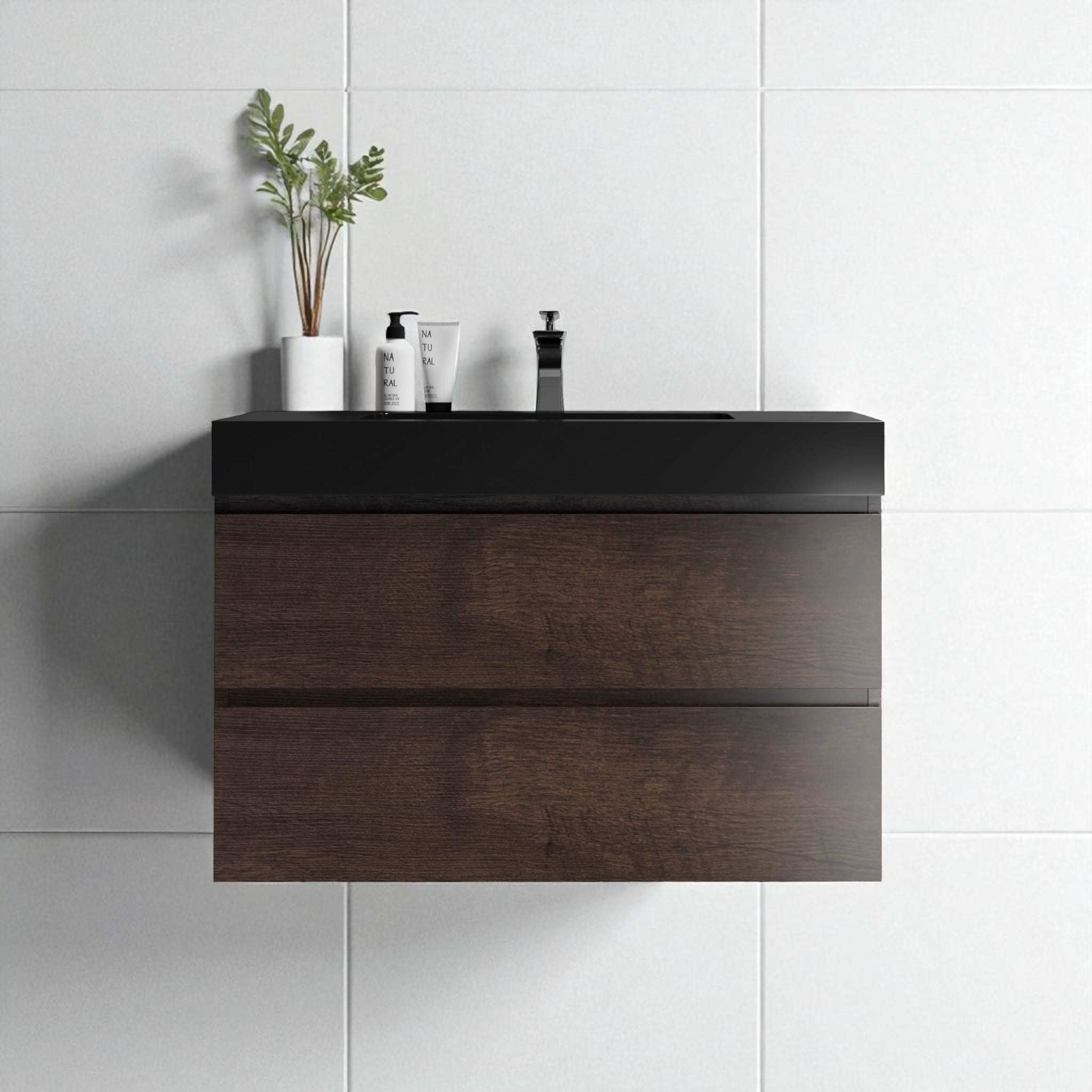 36" Wall Mounted Bathroom Vanity with Engineered Stone Sink and 2 Drawers, Floating Bath Cabinet with Storage