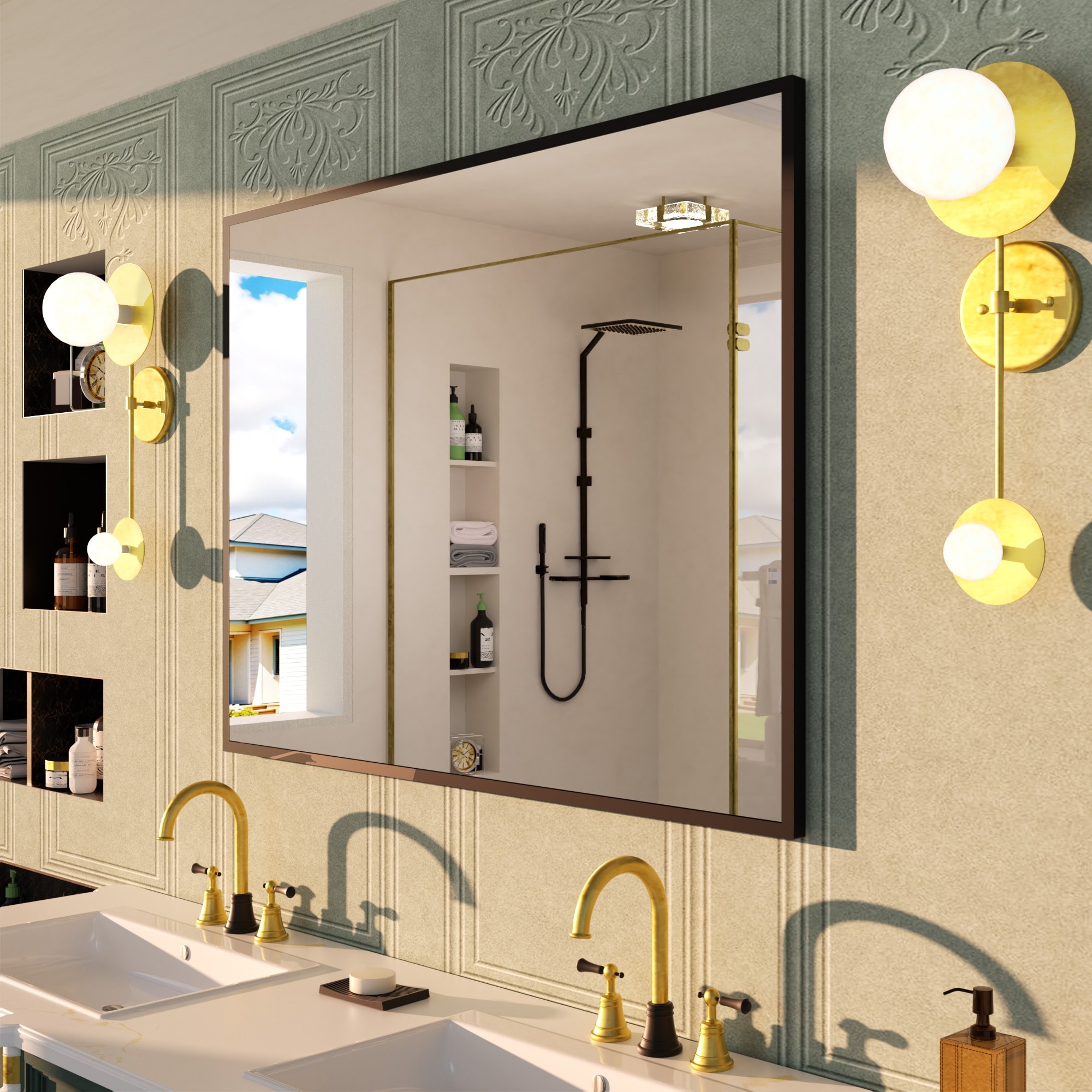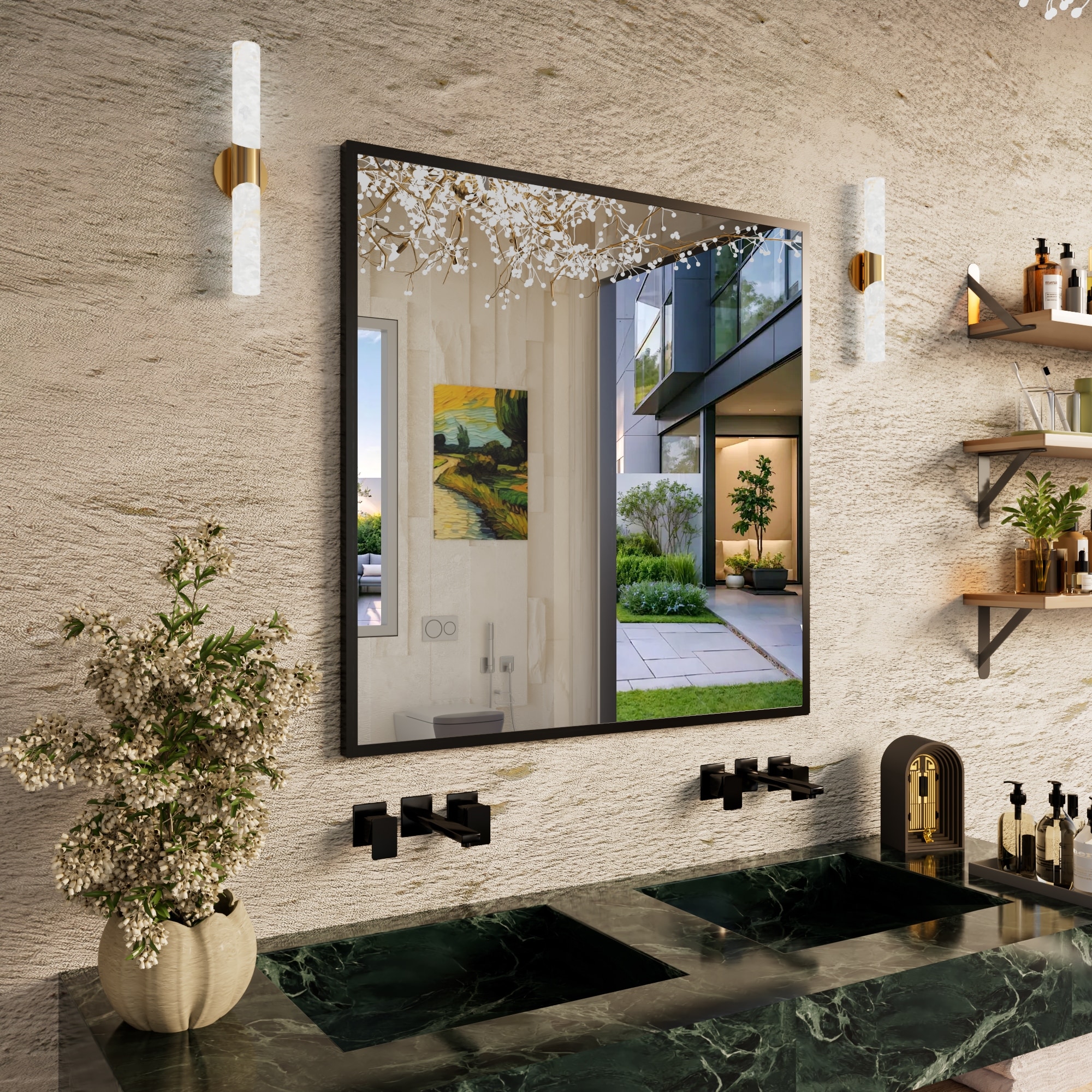 60x40 inch Oversized LED Bathroom Mirror Wall Mounted Mirror with 3 Color Modes Aluminum Frame Large Wall Mirror