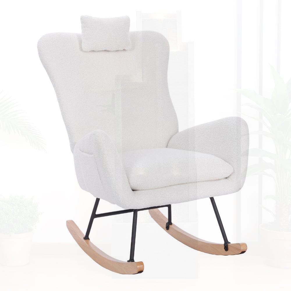 Teddy Upholstered Nursery Rocking Chair, White Fabric