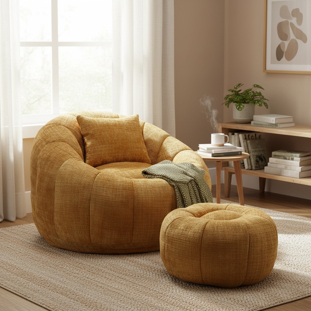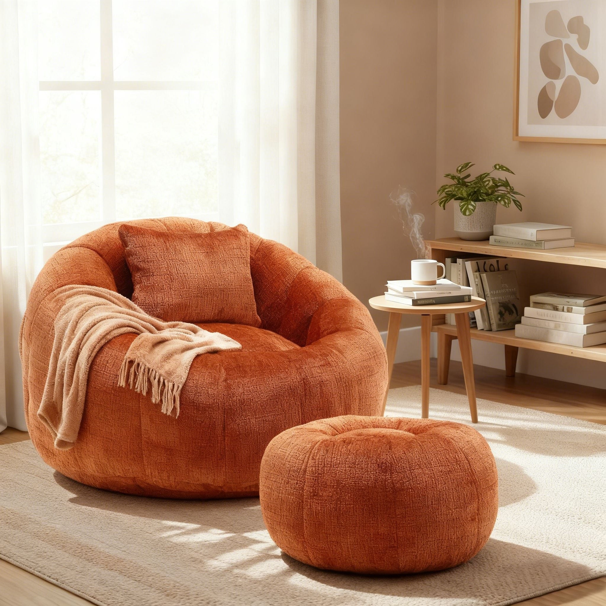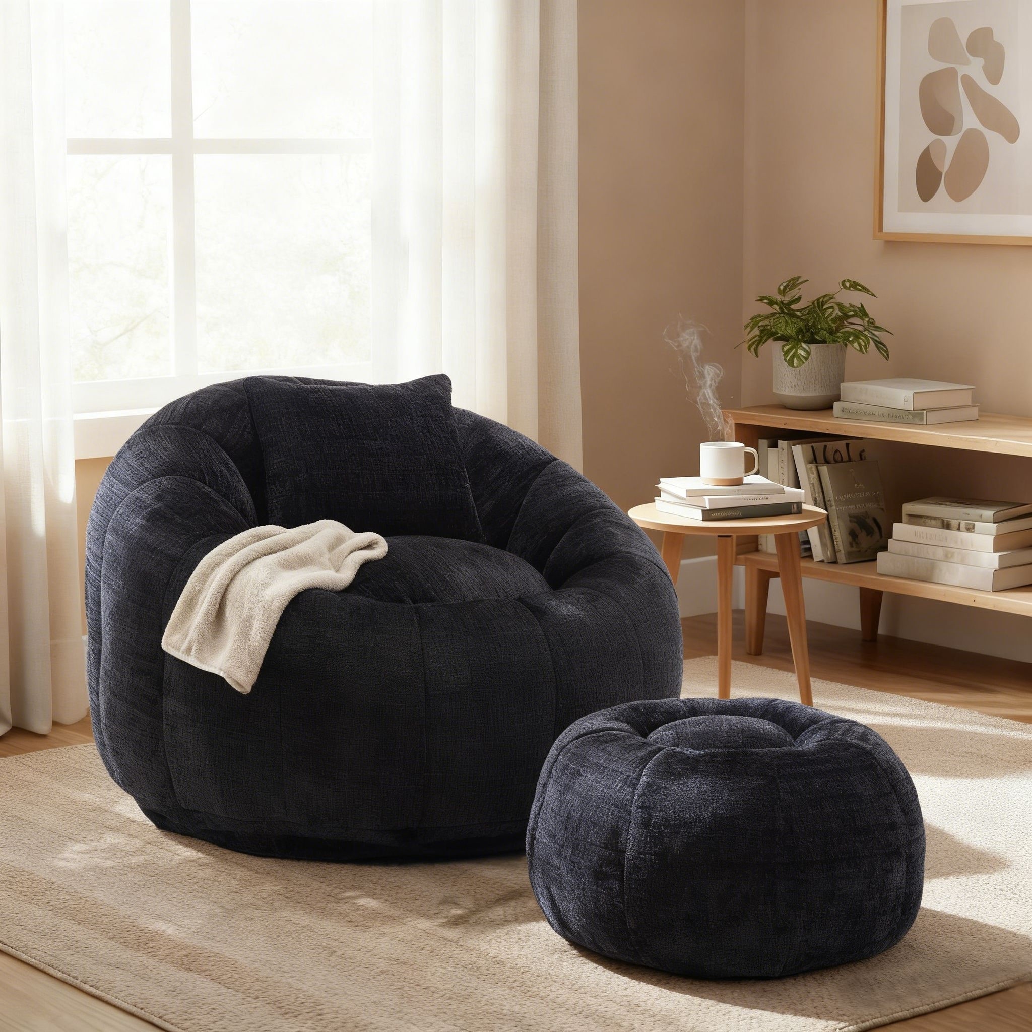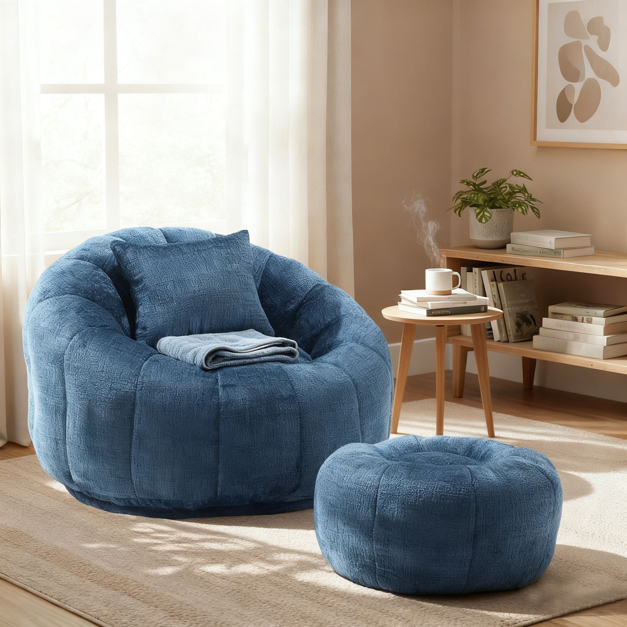 Fluffy Bean Bag Chair, Comfortable Bean Bag, Super Soft Lazy Sofa Chair With Memory Foam And Ottoman, Indoor Bean Bag Chair