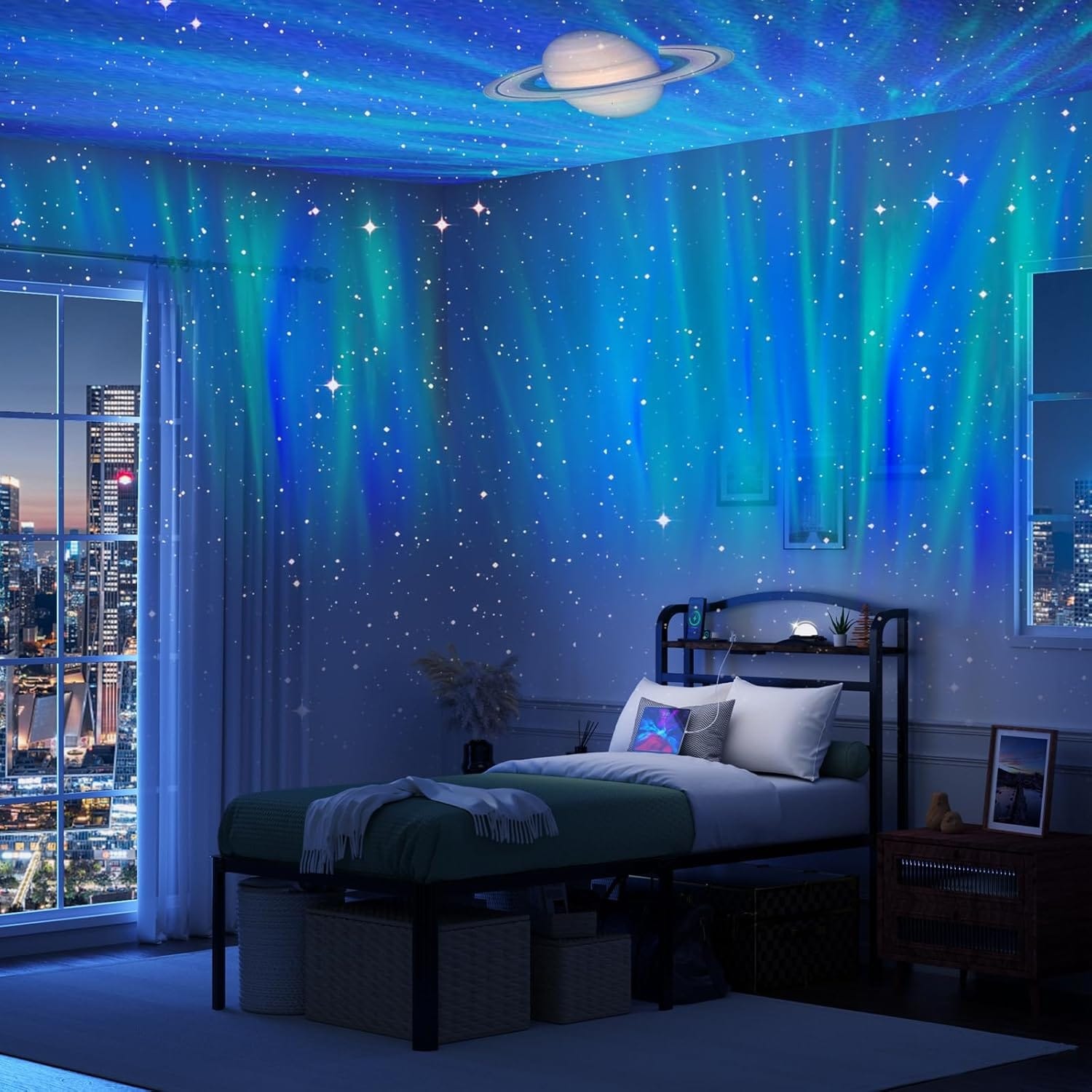 Twin XL Platform Bed Frame with Storage, Charging Station, and Star Projector, No Box Spring Needed