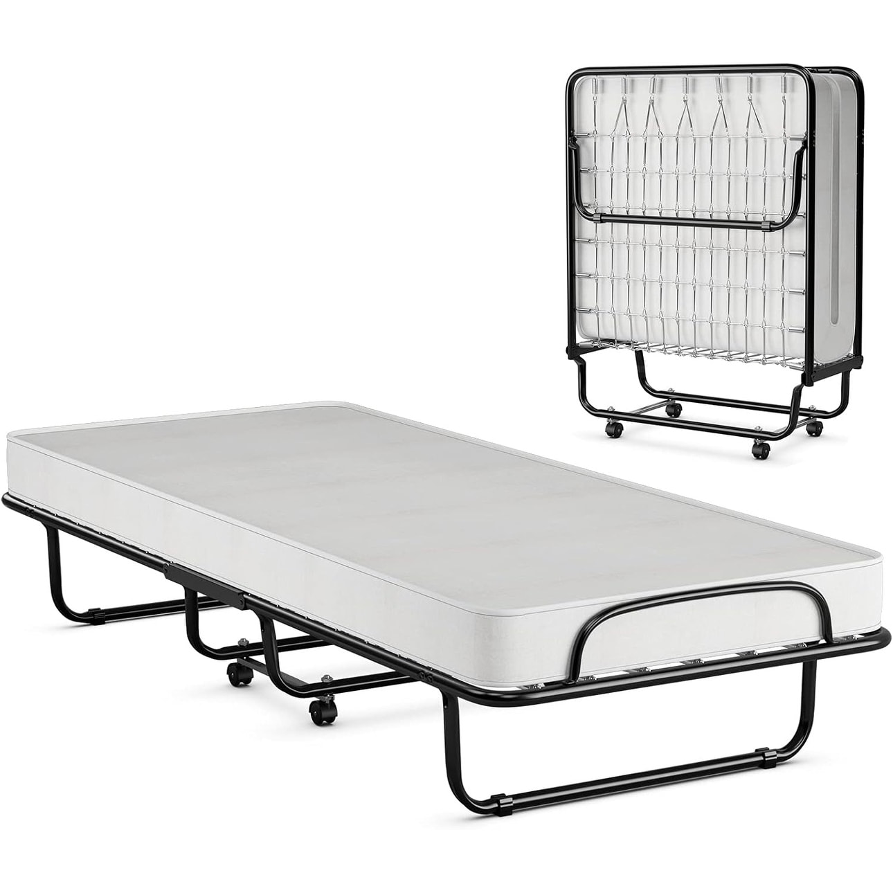 Foldable Guest Bed with Memory Foam Mattress, Sturdy Metal Frame, 75 x 31 Inch, Easy Assembly