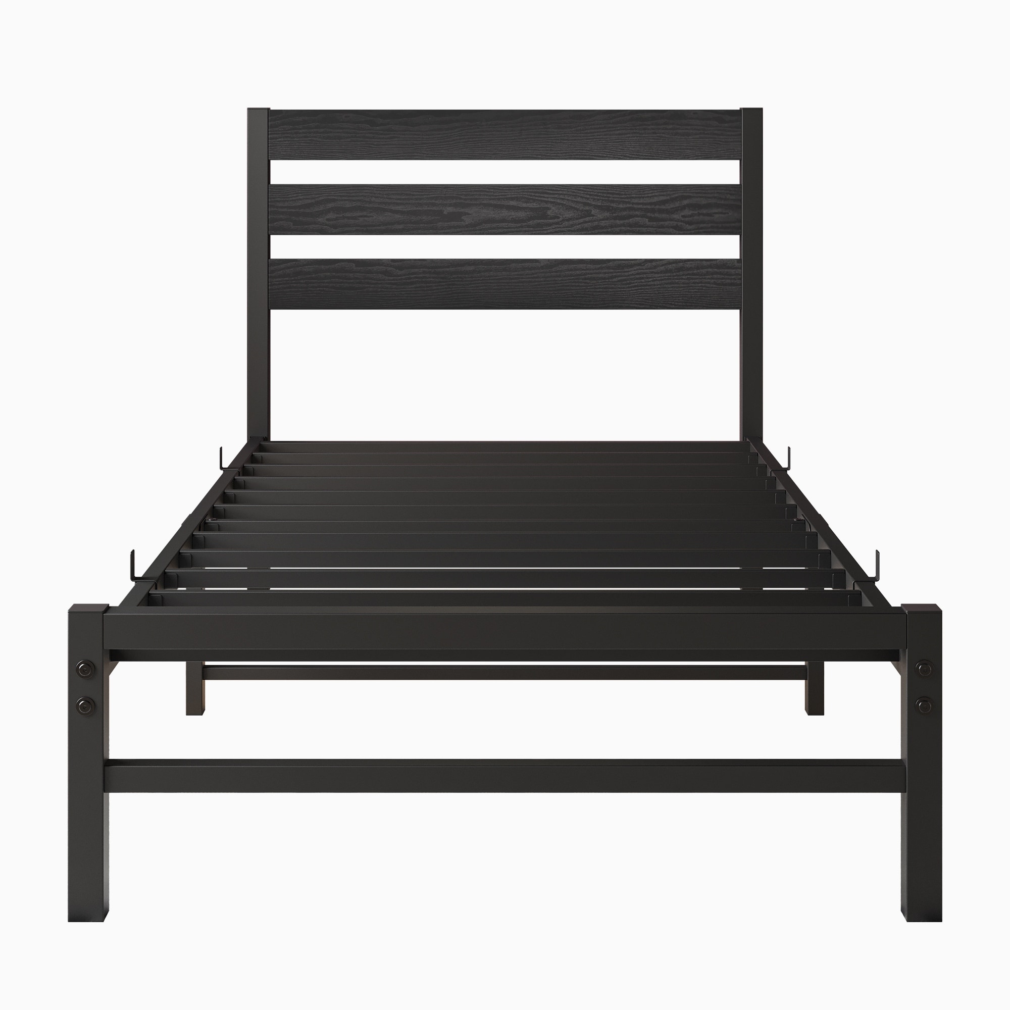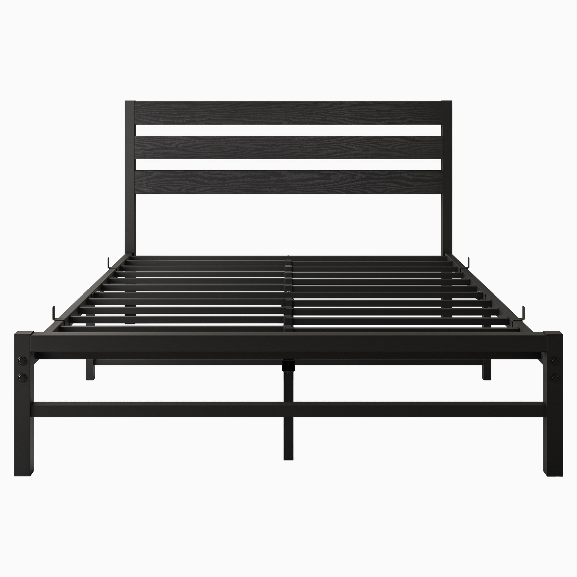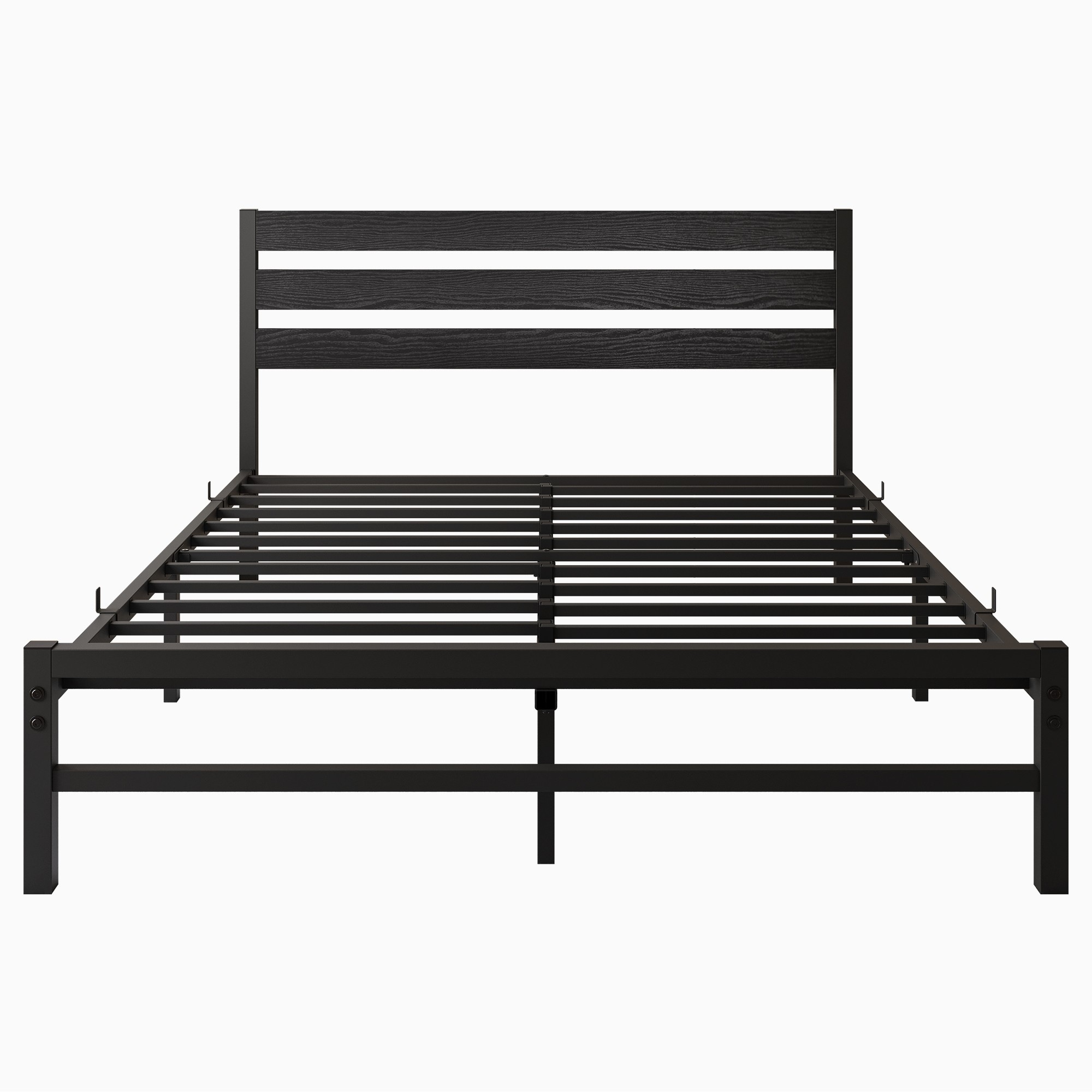 Platform Bed Frame with Rustic Wood Headboard, Black