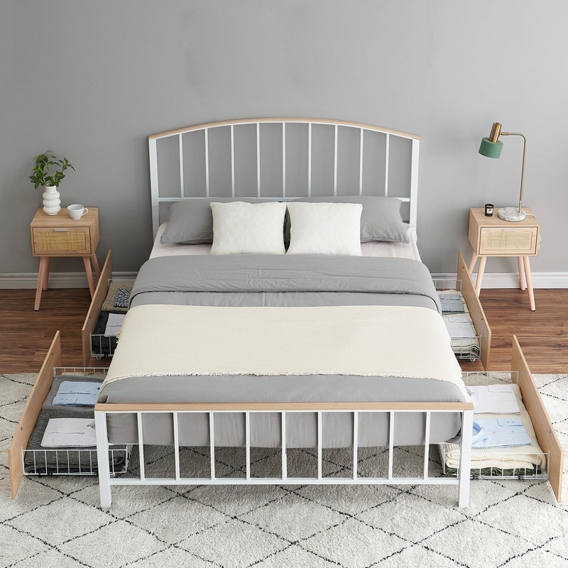 Vintage Industrial Bed Frame with Storage & LED Lights
