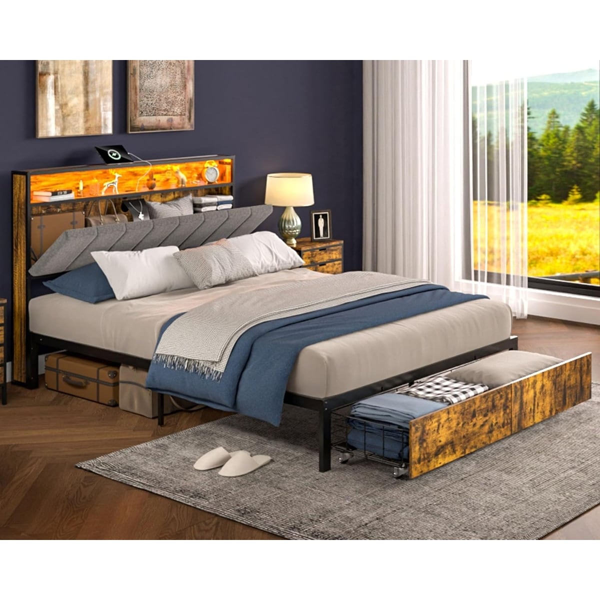 Full LED Bed Frame with Hidden Storage, Charging Station, and RGB Lights