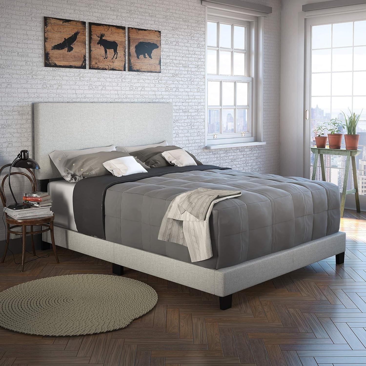 Queen Size White Linen Upholstered Platform Bed Frame with Adjustable Headboard