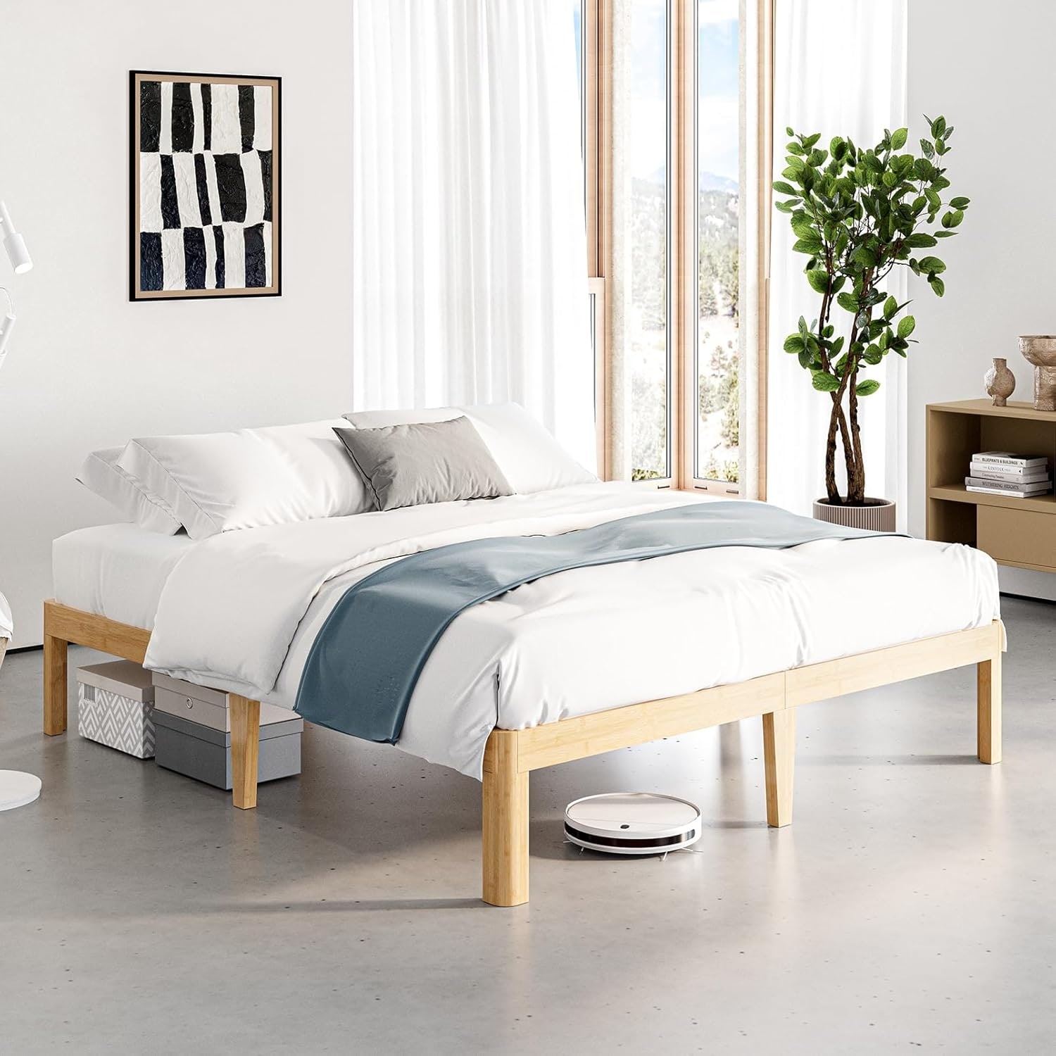 14 Inch High Bamboo King Size Bed Frame with Steel Slat Support, Easy Assembly, Noise-Free Design