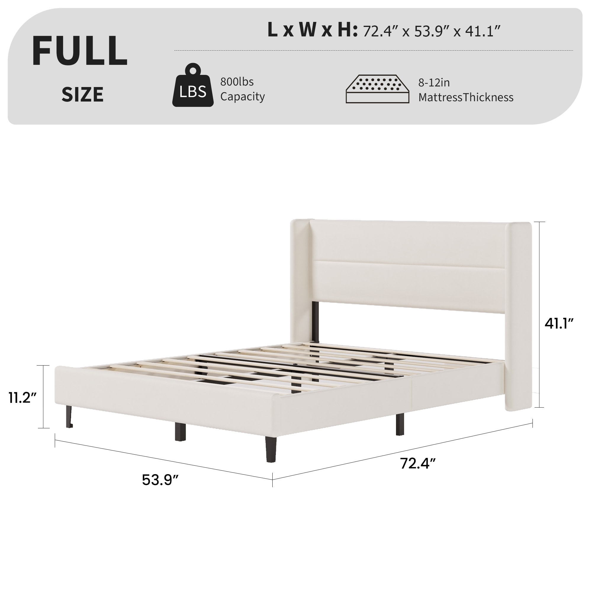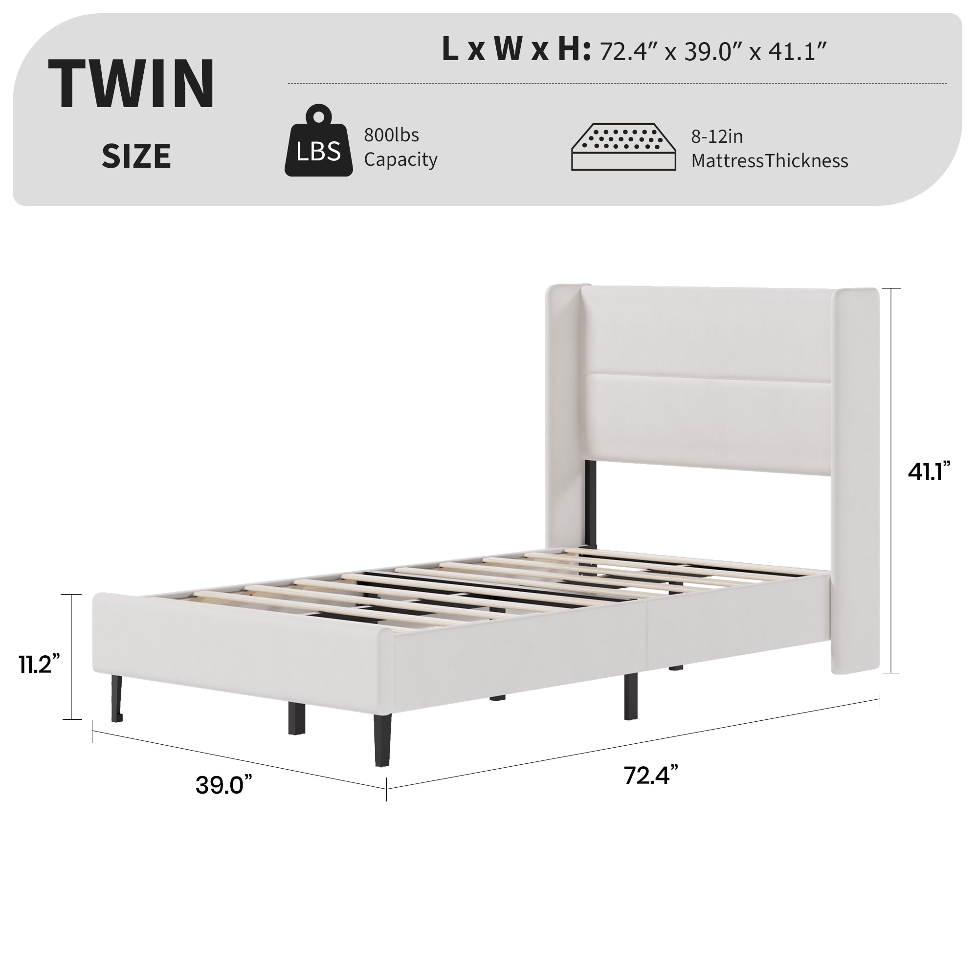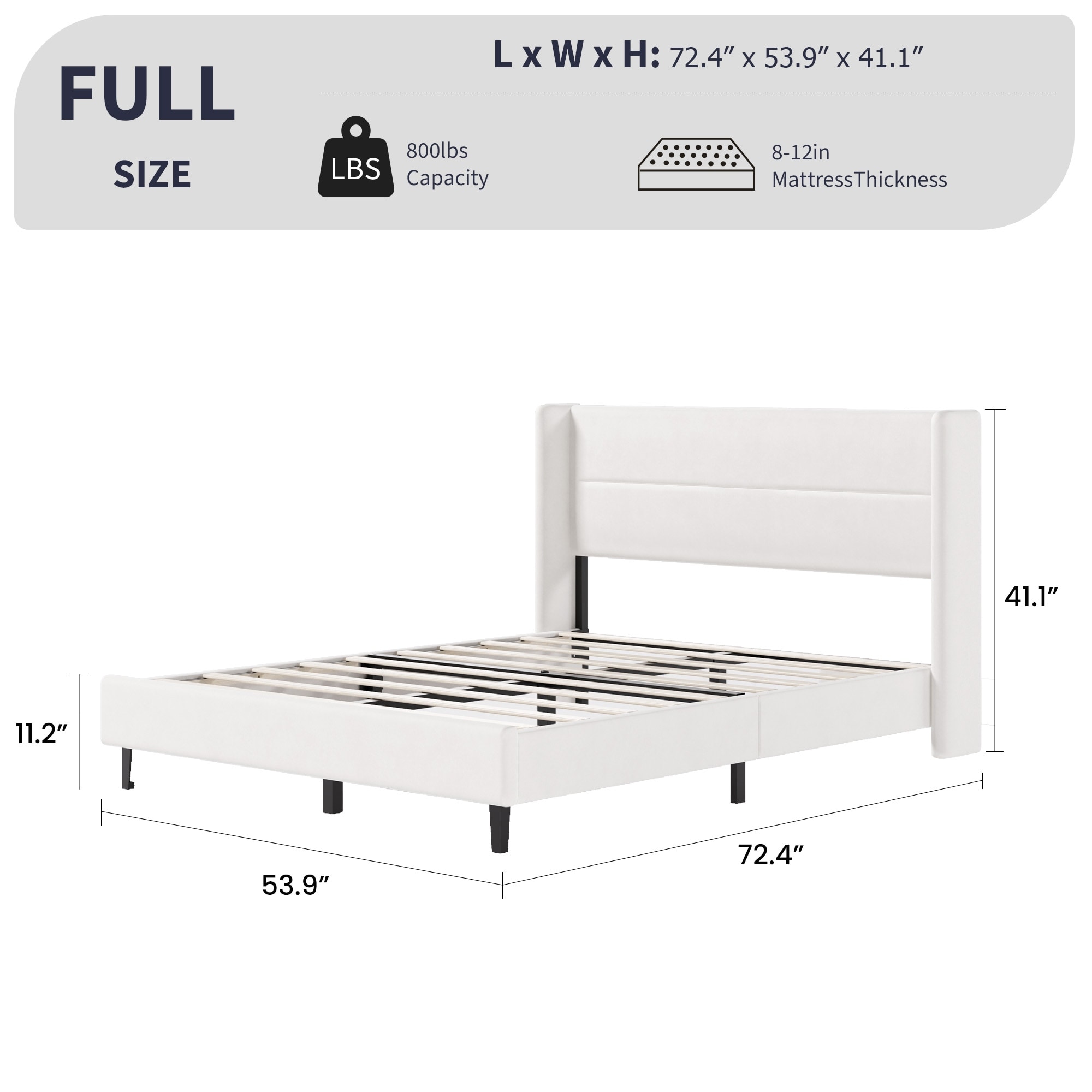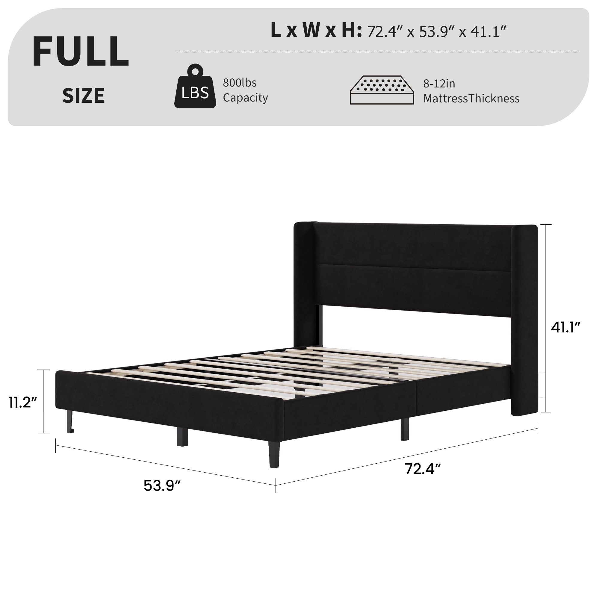 Queen Size Bed Frame with Wingback Headboard, Velvet Upholstered Platform Bedframe with Wood Slats